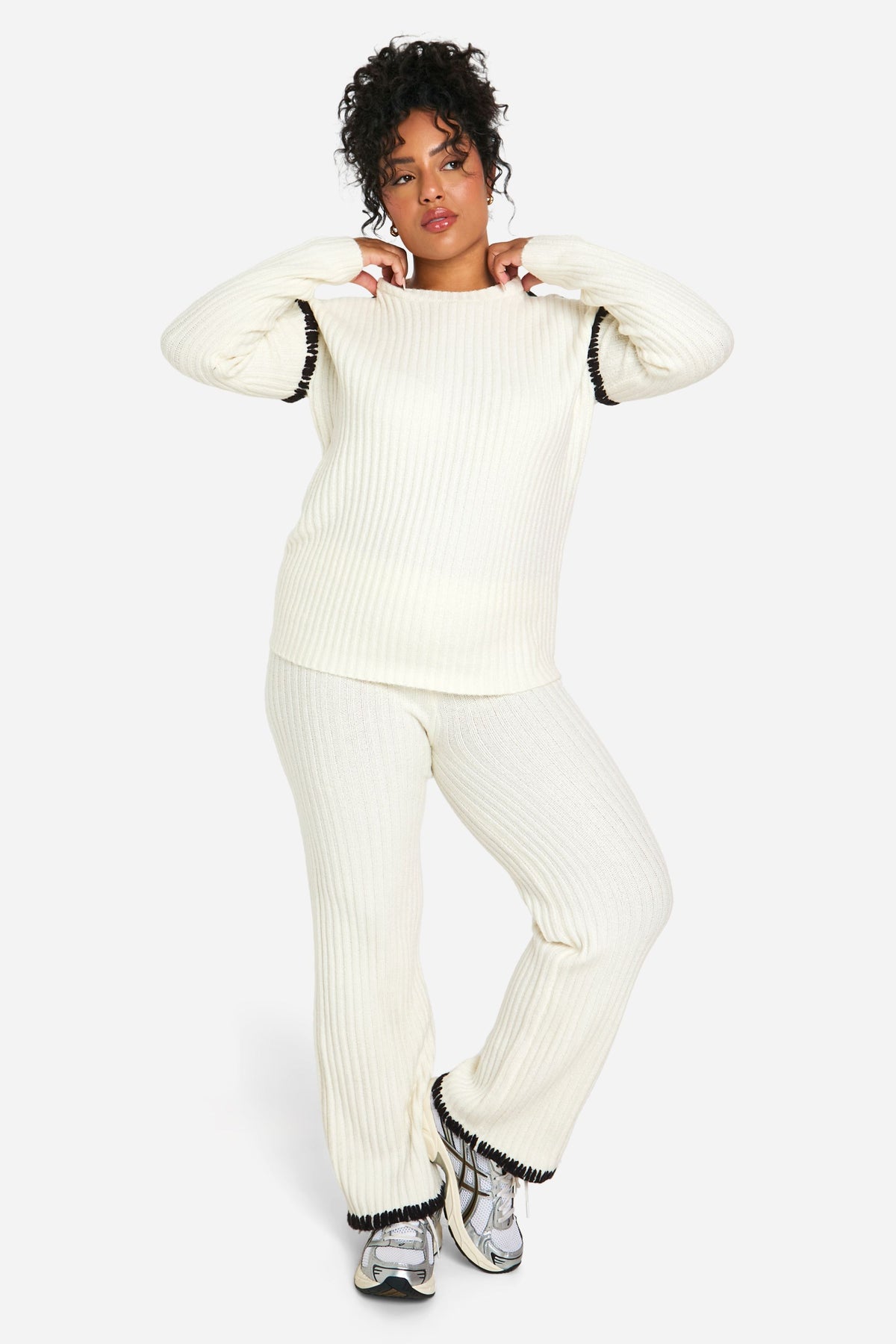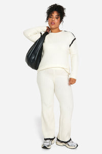Embrace laid-back chic with this Plus Premium Pullover and Trouser set from Boohoo. The ribbed knit texture offers a tactile appeal while ensuring warmth and comfort for those casual days out. The contrast trim detail elevates the look, adding a contemporary twist to this cosy ensemble. Perfect for lounging at home or running errands, this co-ord set can be easily dressed up or down. Pair the pullover with your favourite jeans for a quick coffee run, or team the wide-leg trousers with a crisp white tee and trainers for a relaxed weekend look. For a complete outfit, throw on some statement earrings and a crossbody bag. This versatile set is a must-have for the fashion-forward woman who values both style and comfort in her everyday wardrobe.Discover Plus Premium Heavyweight Contrast Trim Jumper And Trouser Knitted Set available to buy online at us.boohoo.com. Available with quick delivery and easy return options. Shop now!Discover Plus Premium Heavyweight Contrast Trim Jumper And Trouser Knitted Set available to buy online at us.boohoo.com. Available with quick delivery and easy return options. Shop now!