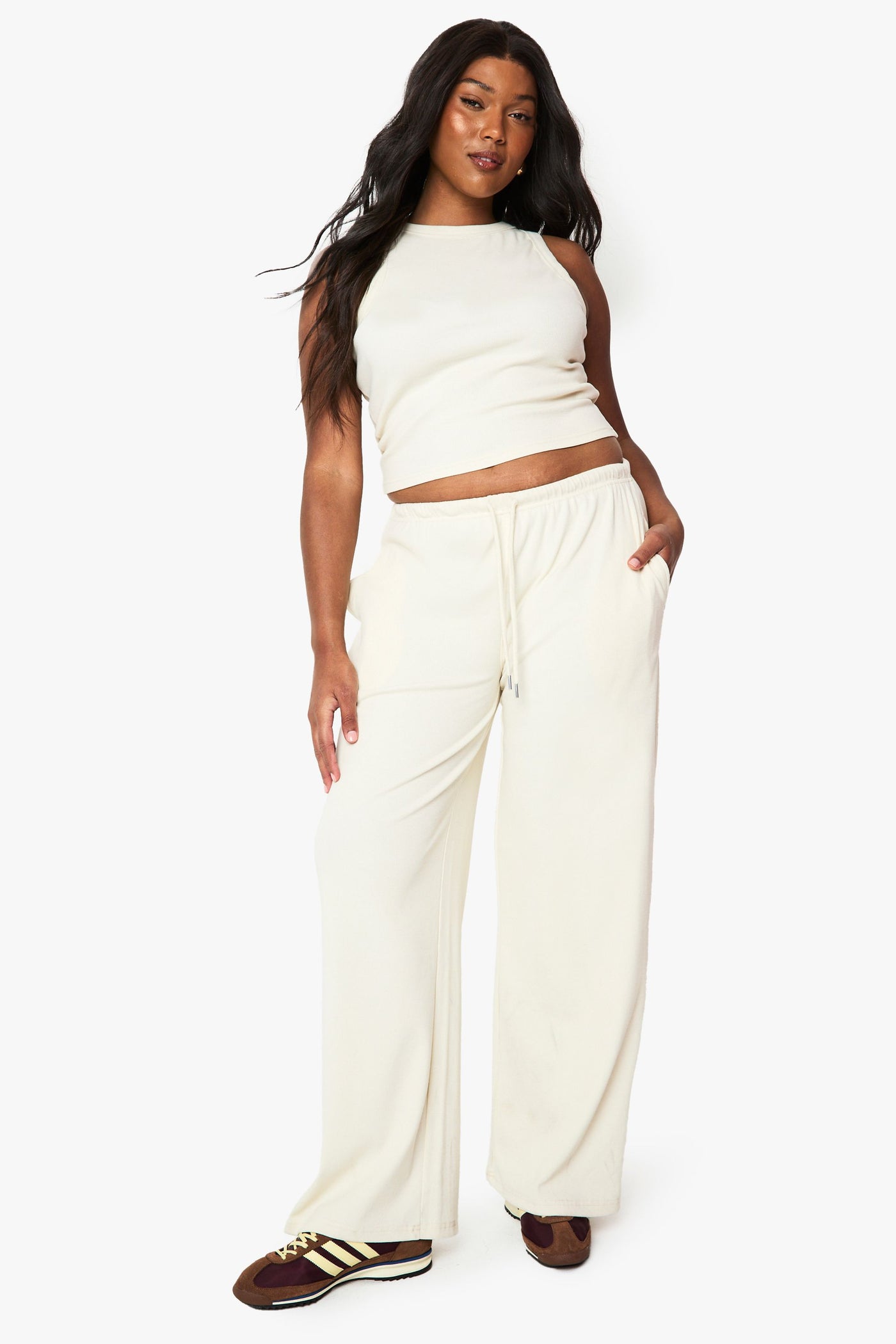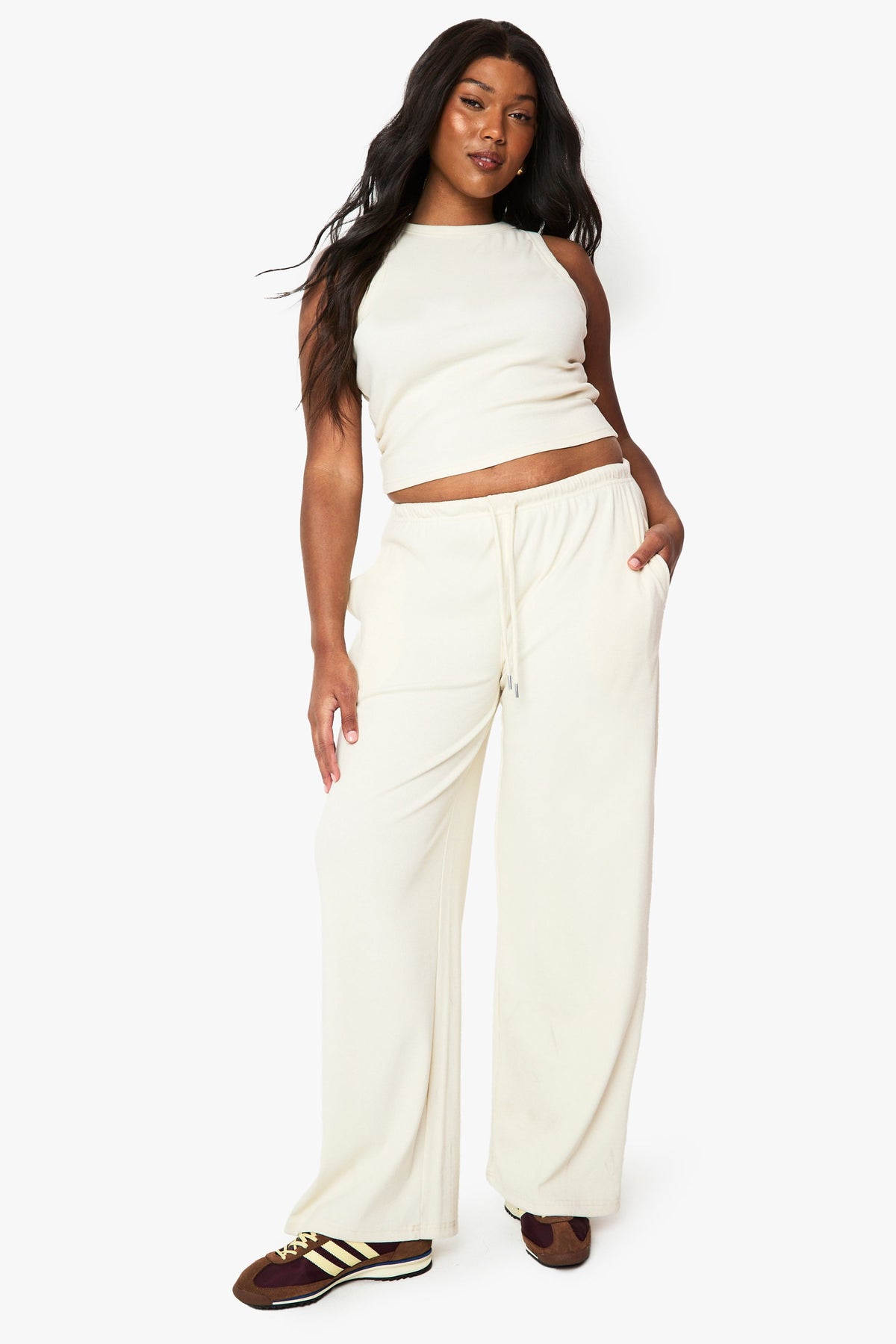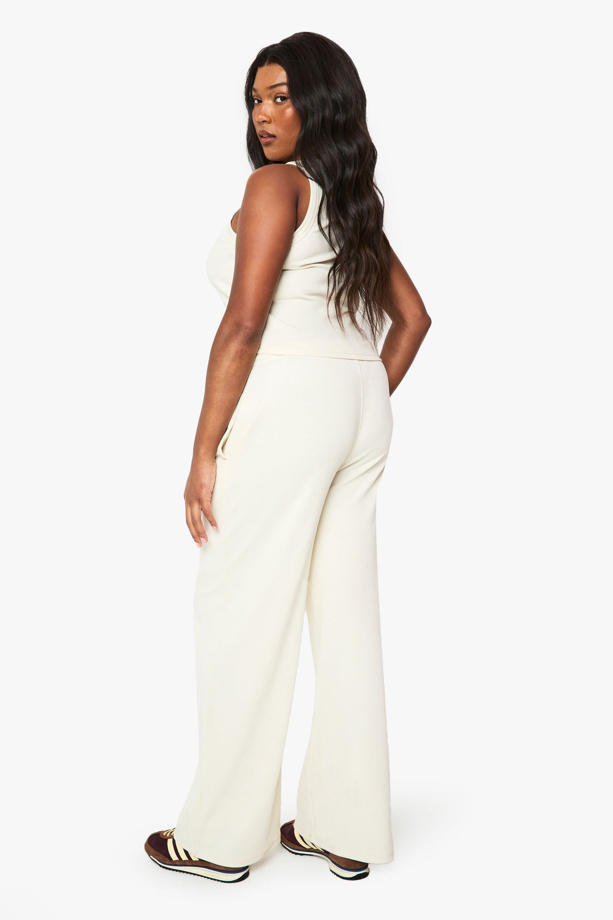 This effortlessly chic plus-size co-ord combines comfort with contemporary style. The ribbed racer tank offers a sporty silhouette that showcases your shoulders, while the relaxed wide-leg trousers create a balanced, flattering look. Perfect for casual outings, style with trainers and a cardigan draped over your shoulders as seen on our model for coffee dates or weekend shopping trips. For a more polished daytime look, add a structured blazer and minimal jewellery. The neutral palette makes this set incredibly versatile - pair with bold accessories to make a statement or keep things understated with tonal additions. This Boohoo co-ord transitions seamlessly from lounging at home to casual meet-ups with friends, embodying the brand's commitment to inclusive, trend-conscious fashion that doesn't compromise on comfort.Discover Plus Racer Rib Vest And Trouser Basic Co-Ord available to buy online at us.boohoo.com. Available with quick delivery and easy return options. Shop now!Discover Plus Racer Rib Vest And Trouser Basic Co-Ord available to buy online at us.boohoo.com. Available with quick delivery and easy return options. Shop now!