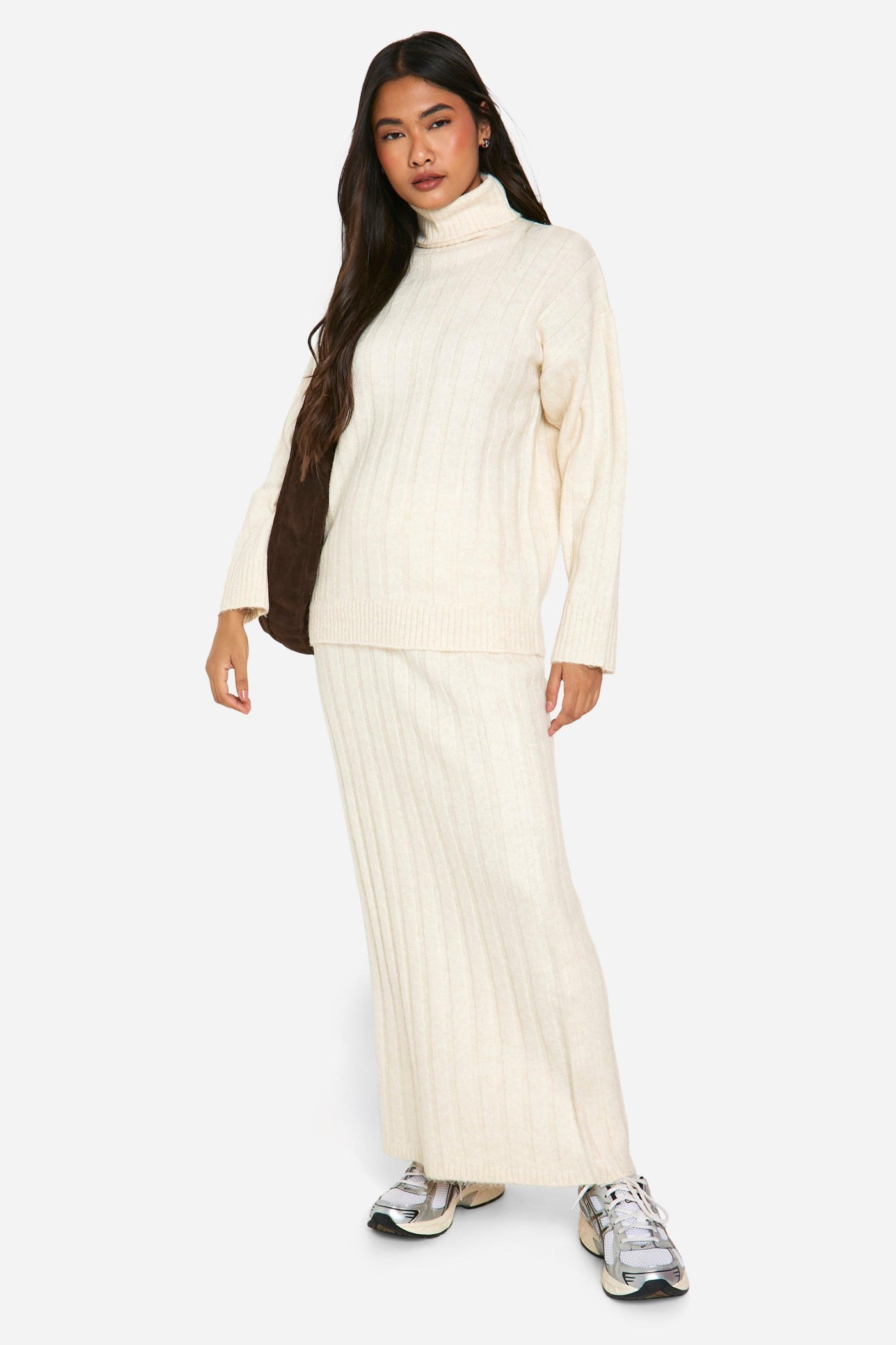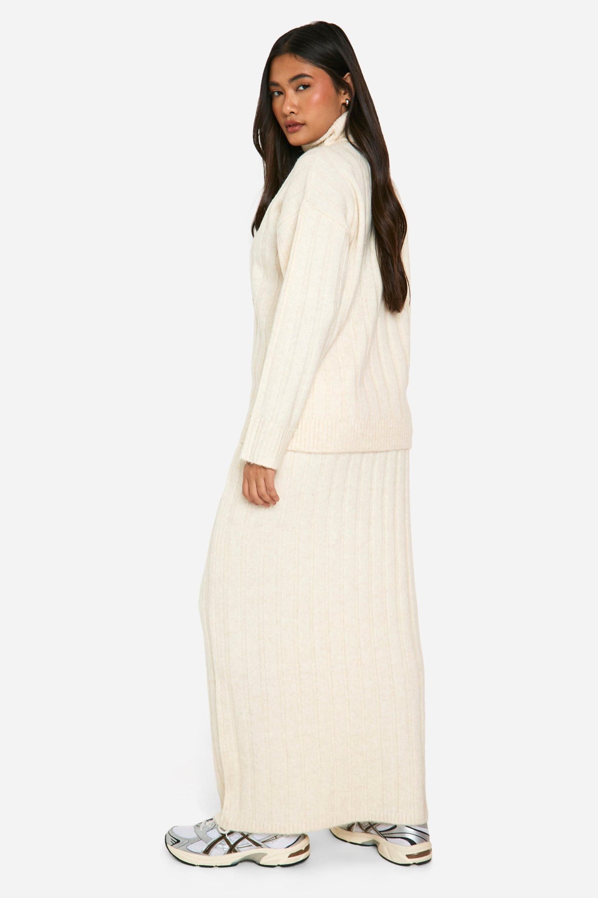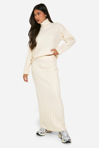 Embrace the chic simplicity of this ribbed roll neck jumper and maxi skirt co-ord. Perfect for those laid-back days when you want to look put-together without compromising on comfort. The relaxed fit jumper pairs seamlessly with the floor-length skirt, creating a streamlined silhouette that's both elegant and casual. Style with chunky trainers for a contemporary twist, or dress it up with ankle boots for family gatherings. Layer with a longline coat and add a statement bag for running errands in style. This versatile set can be mixed and matched with other wardrobe staples, making it a true investment piece. Whether you're lounging at home or meeting friends for a casual brunch, this Boohoo co-ord promises to keep you looking effortlessly chic and feeling utterly comfortable.Discover Wide Soft Rib Roll Neck Jumper And Maxi Skirt Co-ord available to buy online at us.boohoo.com. Available with quick delivery and easy return options. Shop now!Discover Wide Soft Rib Roll Neck Jumper And Maxi Skirt Co-ord available to buy online at us.boohoo.com. Available with quick delivery and easy return options. Shop now!