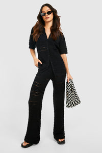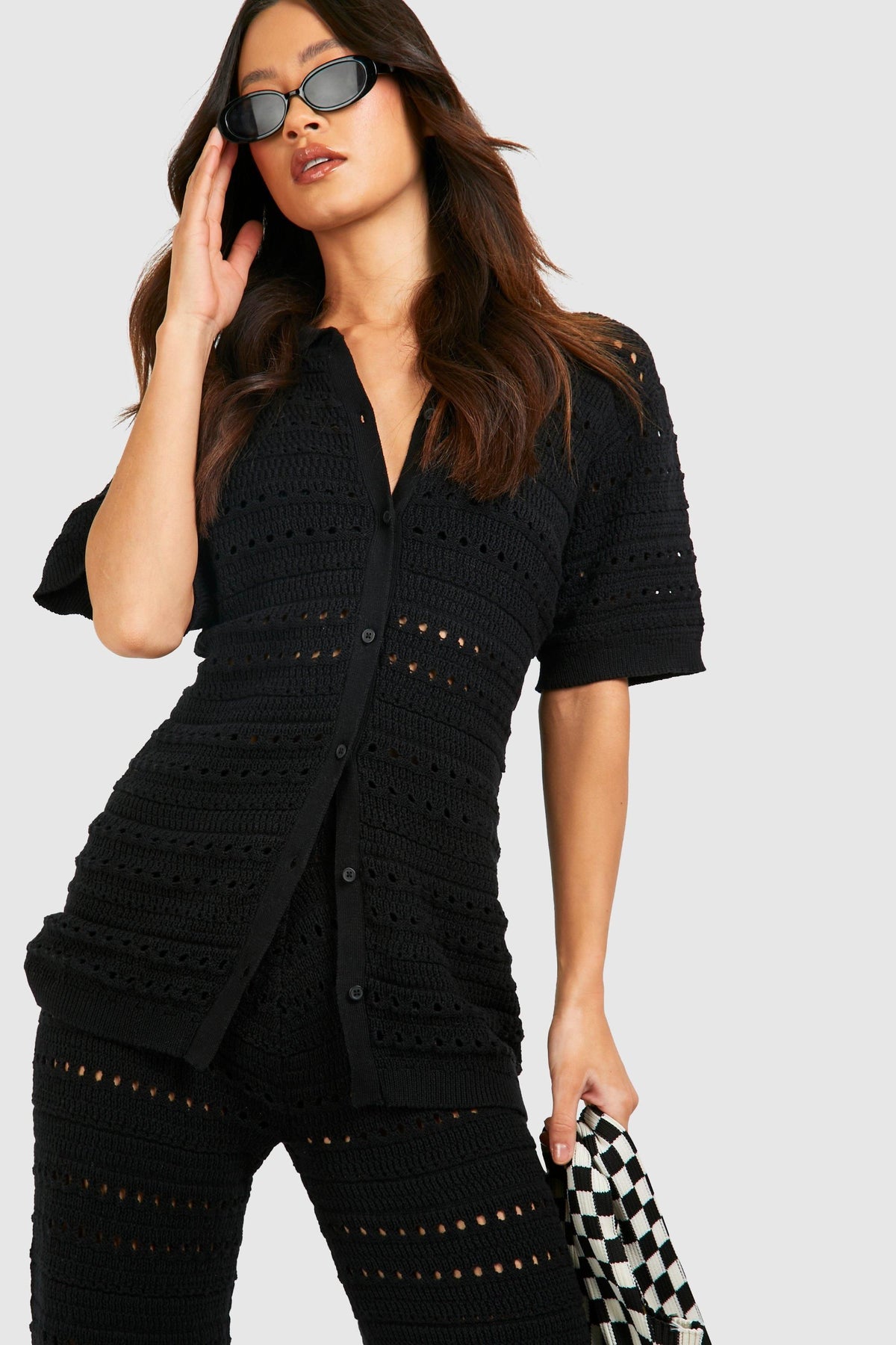 Make a statement on your next beach getaway with this striking Tall Knitted Shirt And Wide Leg Trouser Co-ord from Boohoo. The crochet knit fabric adds a touch of bohemian flair, perfect for those sun-soaked days by the sea. Style the collared shirt with oversized sunglasses and a wide-brimmed hat for a chic poolside look. The wide-leg trousers offer comfort and ease of movement, ideal for strolling along the shoreline or enjoying a casual beachfront dinner. For a more polished evening ensemble, pair with strappy sandals and statement earrings. This co-ord set is a must-have addition to your holiday wardrobe, offering both style and versatility for various summer occasions. Whether you're lounging by the pool or exploring a coastal town, this ensemble will keep you looking effortlessly fashionable.Discover Tall Knitted Shirt And Wide Leg Trouser Co-ord available to buy online at us.boohoo.com. Available with quick delivery and easy return options. Shop now!Discover Tall Knitted Shirt And Wide Leg Trouser Co-ord available to buy online at us.boohoo.com. Available with quick delivery and easy return options. Shop now!