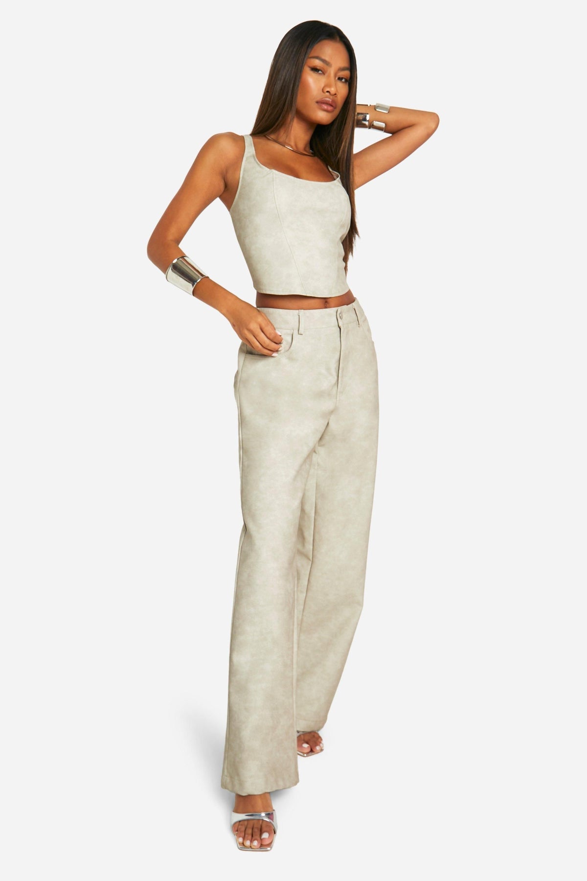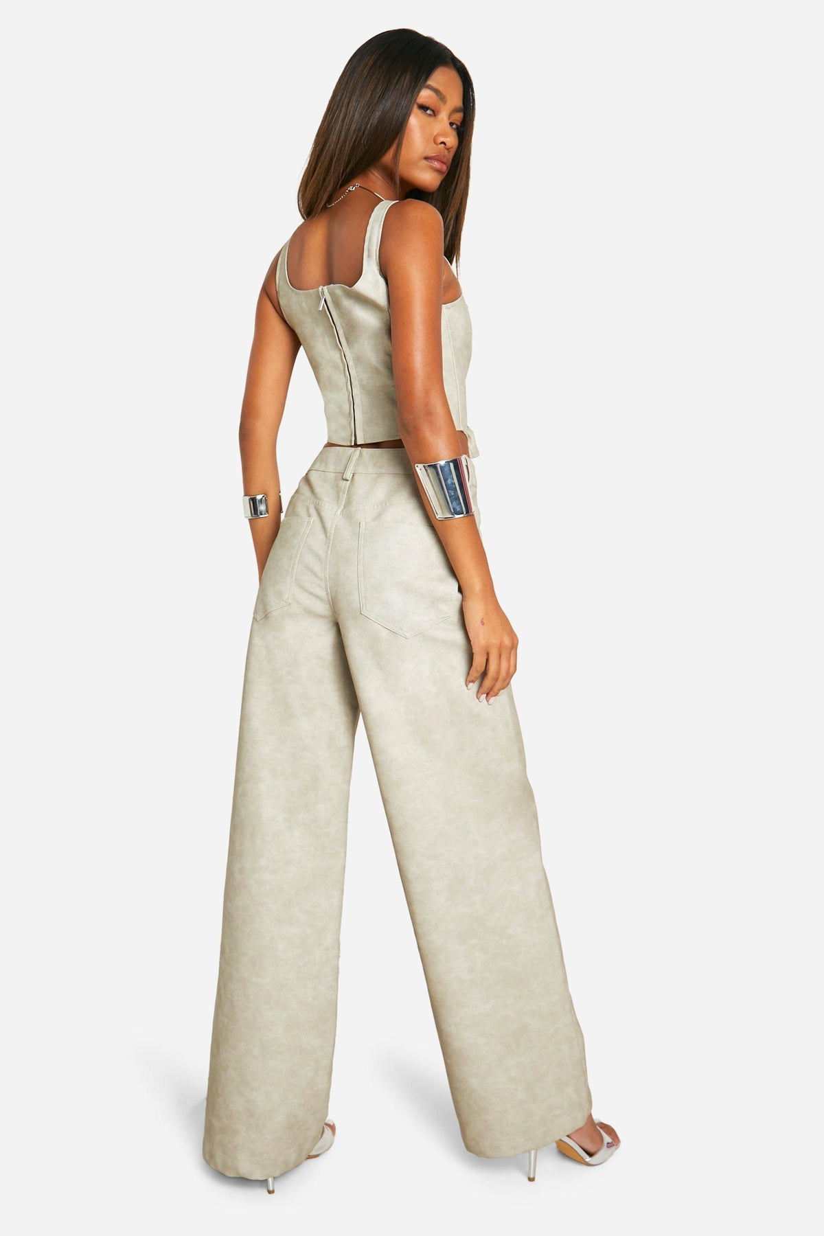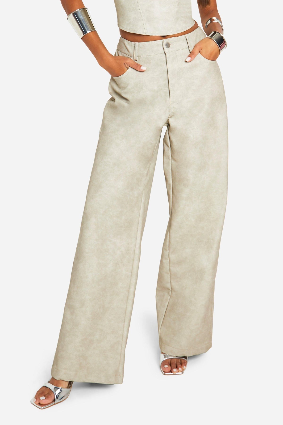 Make a bold statement with these striking wide-leg trousers from Boohoo. The faux leather texture lends an air of sophistication and edge to your ensemble, perfect for those nights out on the town. The high-waisted design elongates your silhouette, while the wide-leg cut offers both comfort and style. Pair with the matching crop top for a coordinated look that's sure to turn heads. For a night at the club, team with strappy heels and statement jewellery. Alternatively, dress it down for drinks with friends by throwing on a relaxed blazer and trainers. The versatile nature of these trousers allows for endless styling possibilities, making them a must-have addition to your wardrobe for any social occasion.Discover Washed Faux Leather Wide Leg Trousers available to buy online at us.boohoo.com. Available with quick delivery and easy return options. Shop now!Discover Washed Faux Leather Wide Leg Trousers available to buy online at us.boohoo.com. Available with quick delivery and easy return options. Shop now!