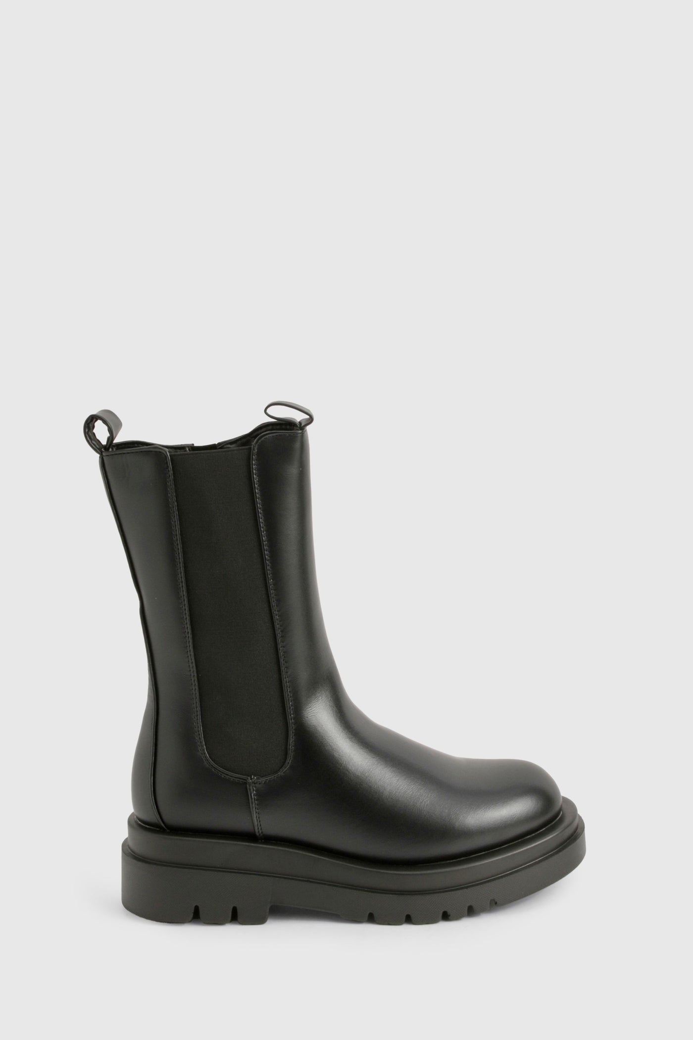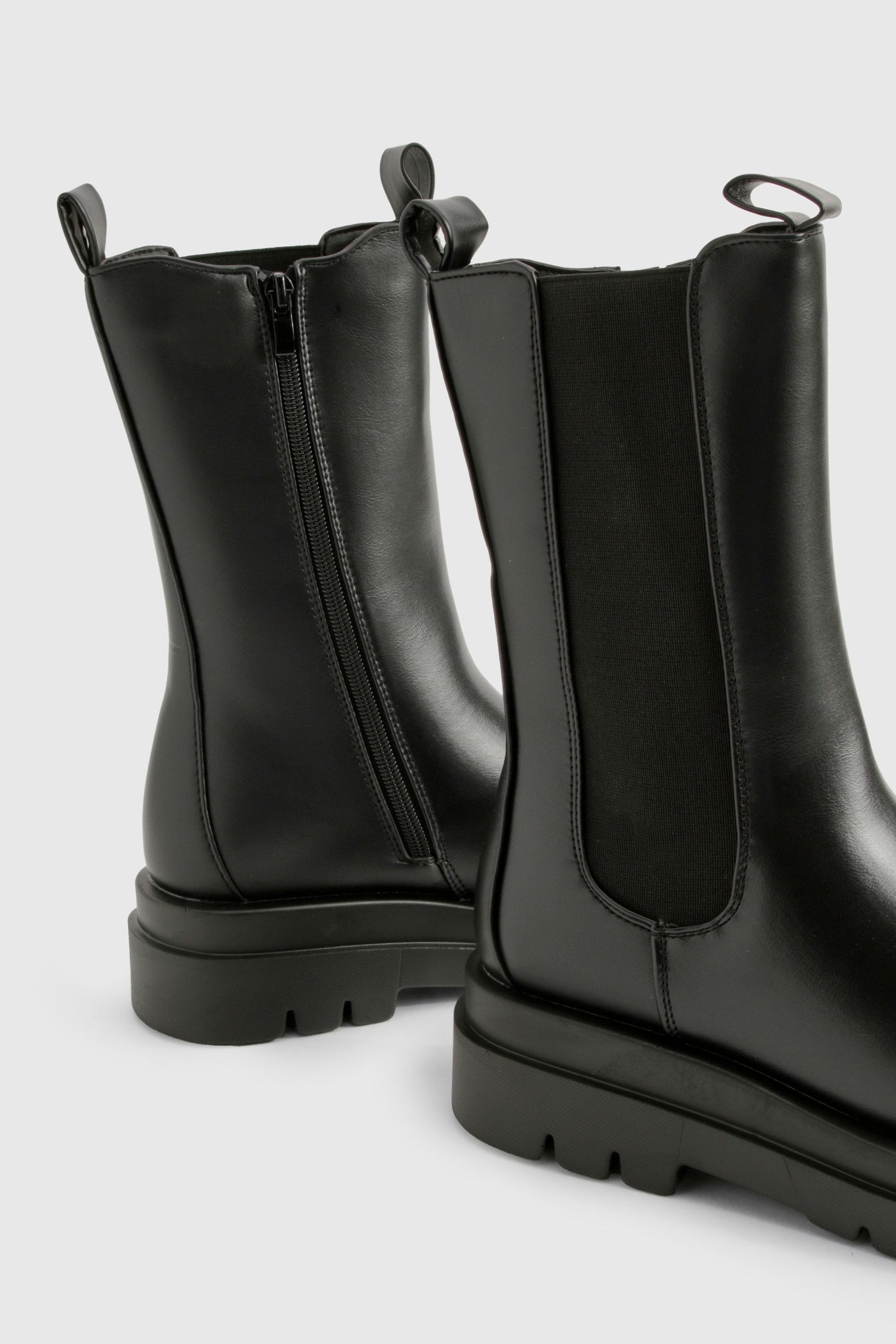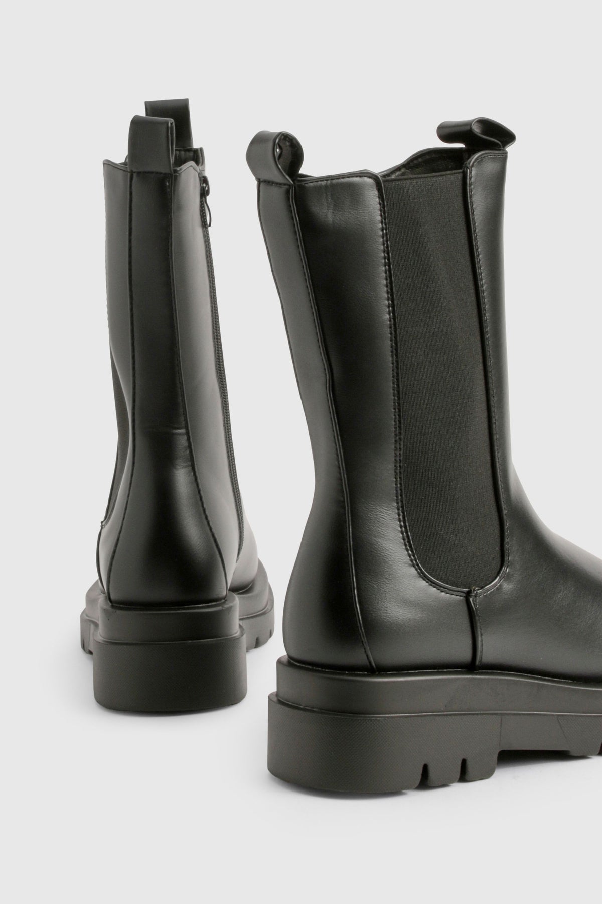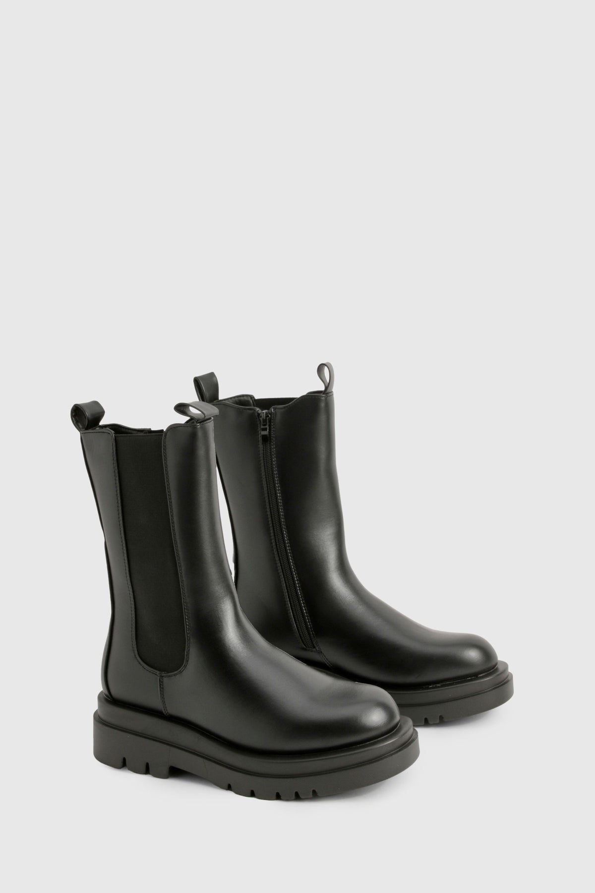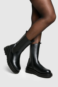 Step out in confidence with these eye-catching chunky cleated calf-high Chelsea boots. Perfect for the fashion-forward trendsetter, these boots combine style and practicality effortlessly. The robust cleated sole not only provides excellent traction but also adds a contemporary edge to your look. Pair them with skinny jeans and an oversized jumper for a casual day out, or style them with a flowy midi dress and leather jacket for an edgy evening ensemble. These versatile boots are ideal for various casual occasions, from family gatherings to weekend brunches with friends. The flat heel ensures comfort for extended wear, making them a go-to choice for city exploration or music festivals. Embrace the bold and daring aesthetic of Boohoo with these statement boots that are sure to turn heads wherever you go.Discover Chunky Cleated Calf High Chelsea Boots available to buy online at us.boohoo.com. Available with quick delivery and easy return options. Shop now!Discover Chunky Cleated Calf High Chelsea Boots available to buy online at us.boohoo.com. Available with quick delivery and easy return options. Shop now!