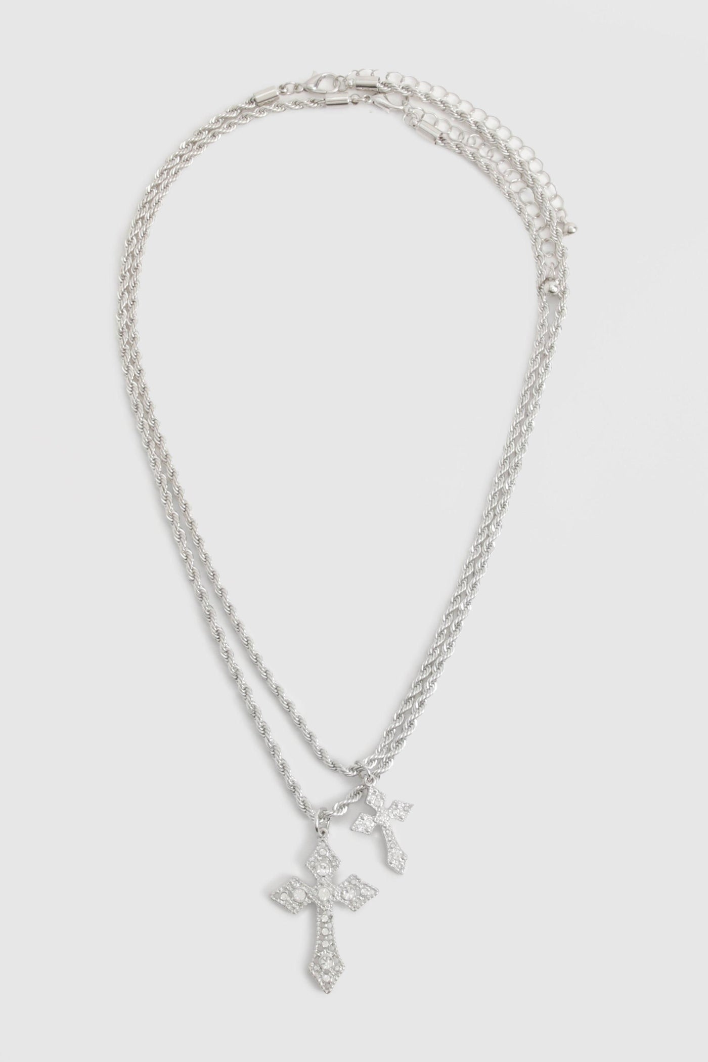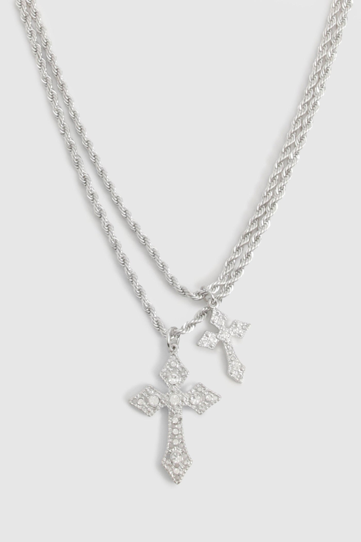 Add a touch of understated glamour to your ensemble with this captivating double-chain necklace. The delicate design features two ornate cross pendants, with the larger one boasting eye-catching embellishments that catch the light beautifully. Perfect for both day and night looks, this versatile piece can be adjusted to sit at your desired length, allowing you to customise your style. Layer it over a simple black top for a chic contrast, or pair it with a floaty summer dress for a bohemian-inspired look. Whether you're heading to a casual brunch with friends or a relaxed evening out, this necklace will add just the right amount of sparkle to your outfit without overpowering it. Its subtle charm makes it an ideal accessory for various occasions, from family gatherings to laid-back social events, effortlessly elevating your style with a hint of sophistication.Discover Cross Double Pendant Necklace available to buy online at us.boohoo.com. Available with quick delivery and easy return options. Shop now!Discover Cross Double Pendant Necklace available to buy online at us.boohoo.com. Available with quick delivery and easy return options. Shop now!