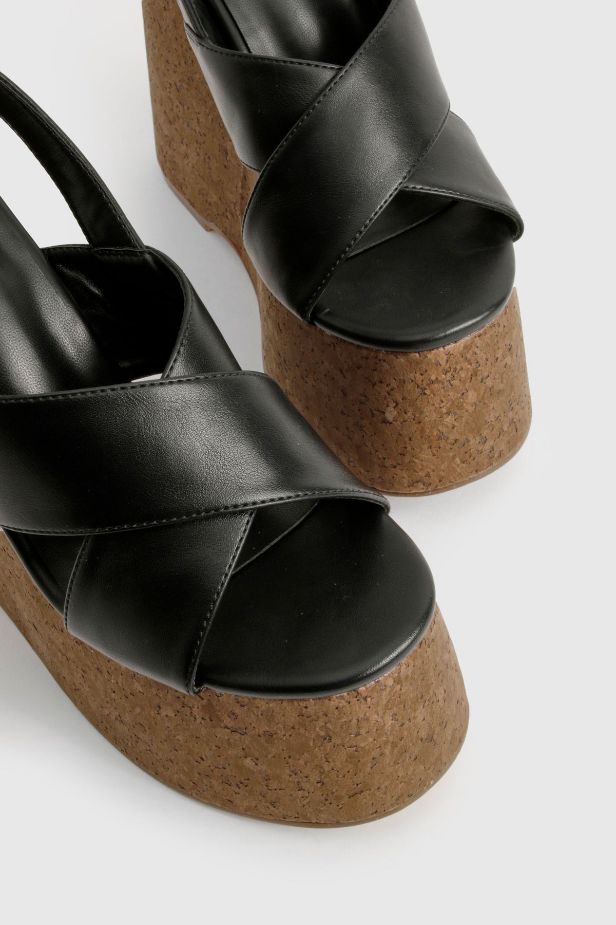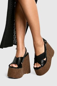 Make a bold statement with these eye-catching platform wedges. The criss-cross strap design not only ensures a secure fit but also adds a touch of sophistication to your look. The cork-inspired wedge heel provides a natural, earthy contrast to the sleek upper, creating a perfect balance of style and comfort. Ideal for those seeking to add height without sacrificing stability, these shoes are versatile enough for various casual occasions. Pair them with a flowing maxi dress for a boho-chic garden party look, or team them with cropped trousers and a breezy blouse for a leisurely brunch with friends. The adjustable slingback strap allows for a customised fit, ensuring comfort throughout the day. Whether you're strolling through a summer fair or enjoying a casual night out, these wedges will keep you looking stylish and feeling confident.Discover Crossover Cork Detail Platform Wedges available to buy online at us.boohoo.com. Available with quick delivery and easy return options. Shop now!Discover Crossover Cork Detail Platform Wedges available to buy online at us.boohoo.com. Available with quick delivery and easy return options. Shop now!