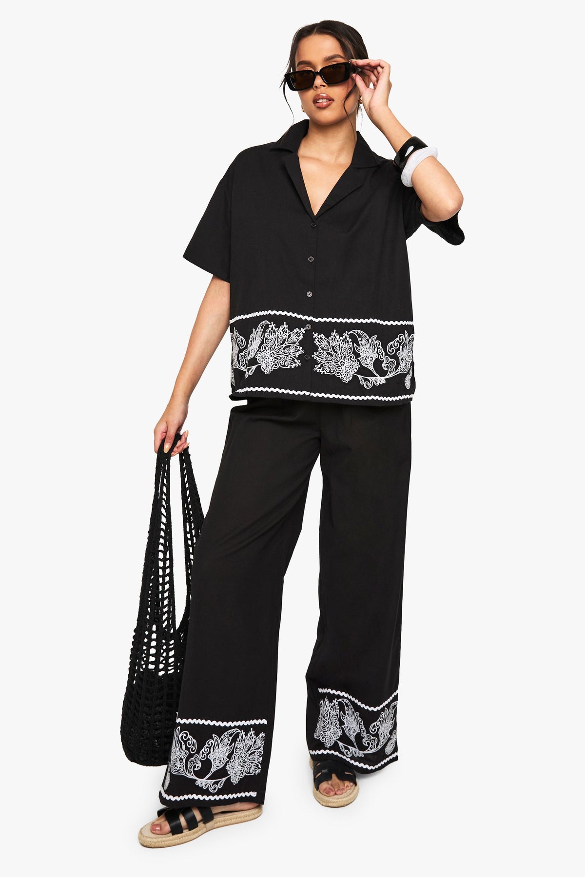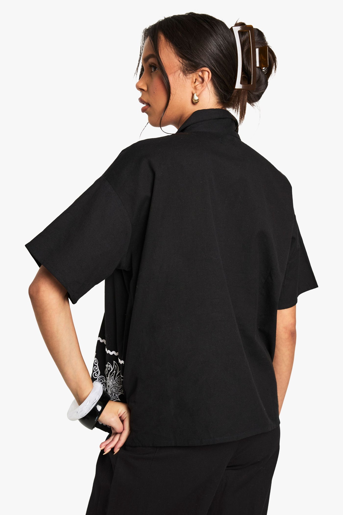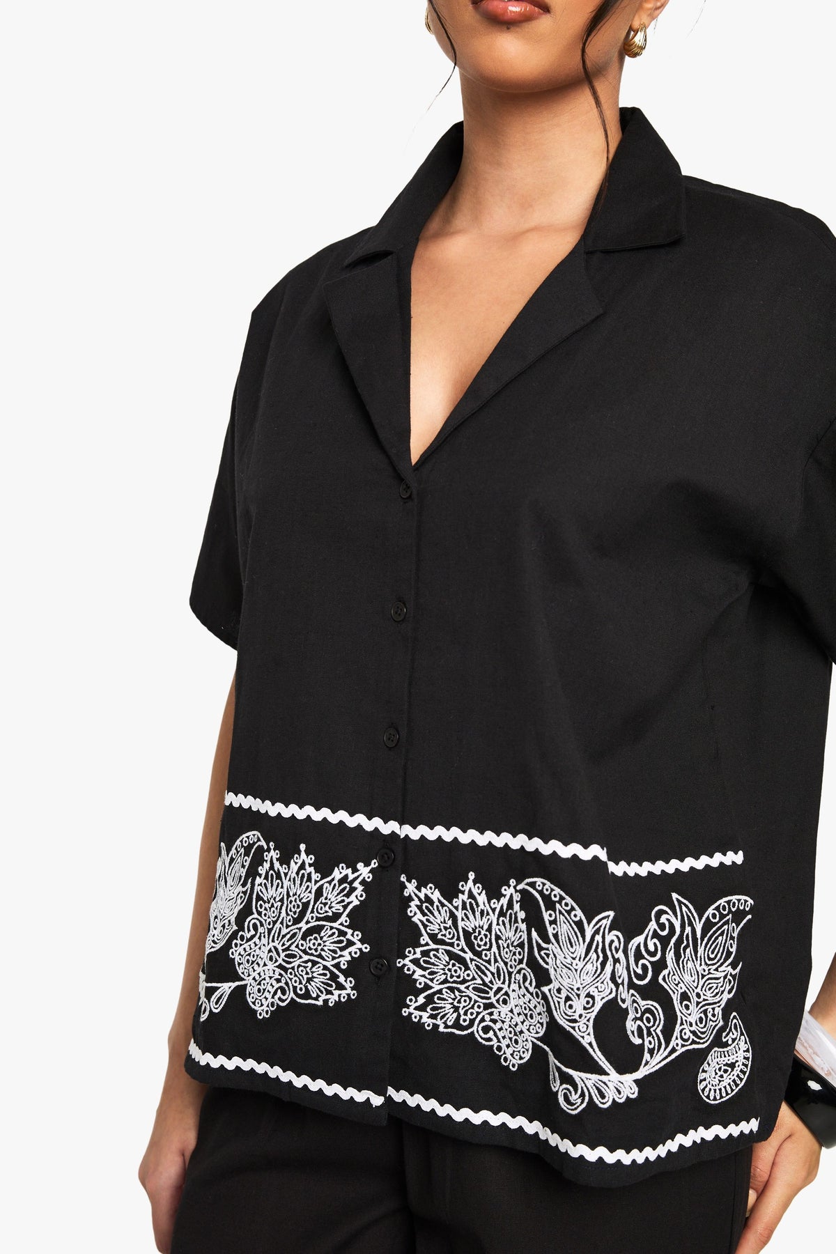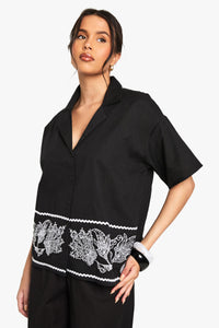 Embroidered Trim Cotton Poplin Shirt
