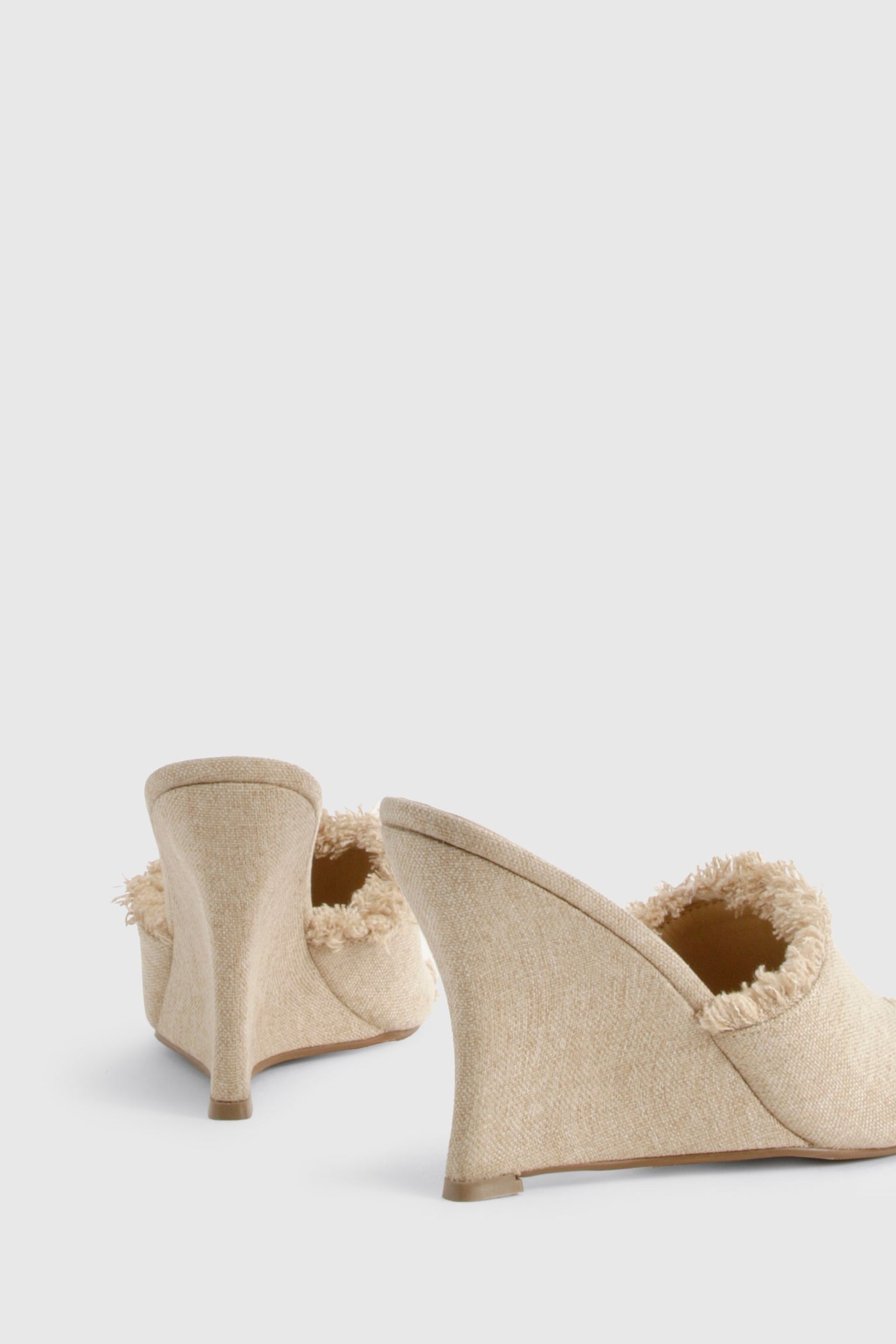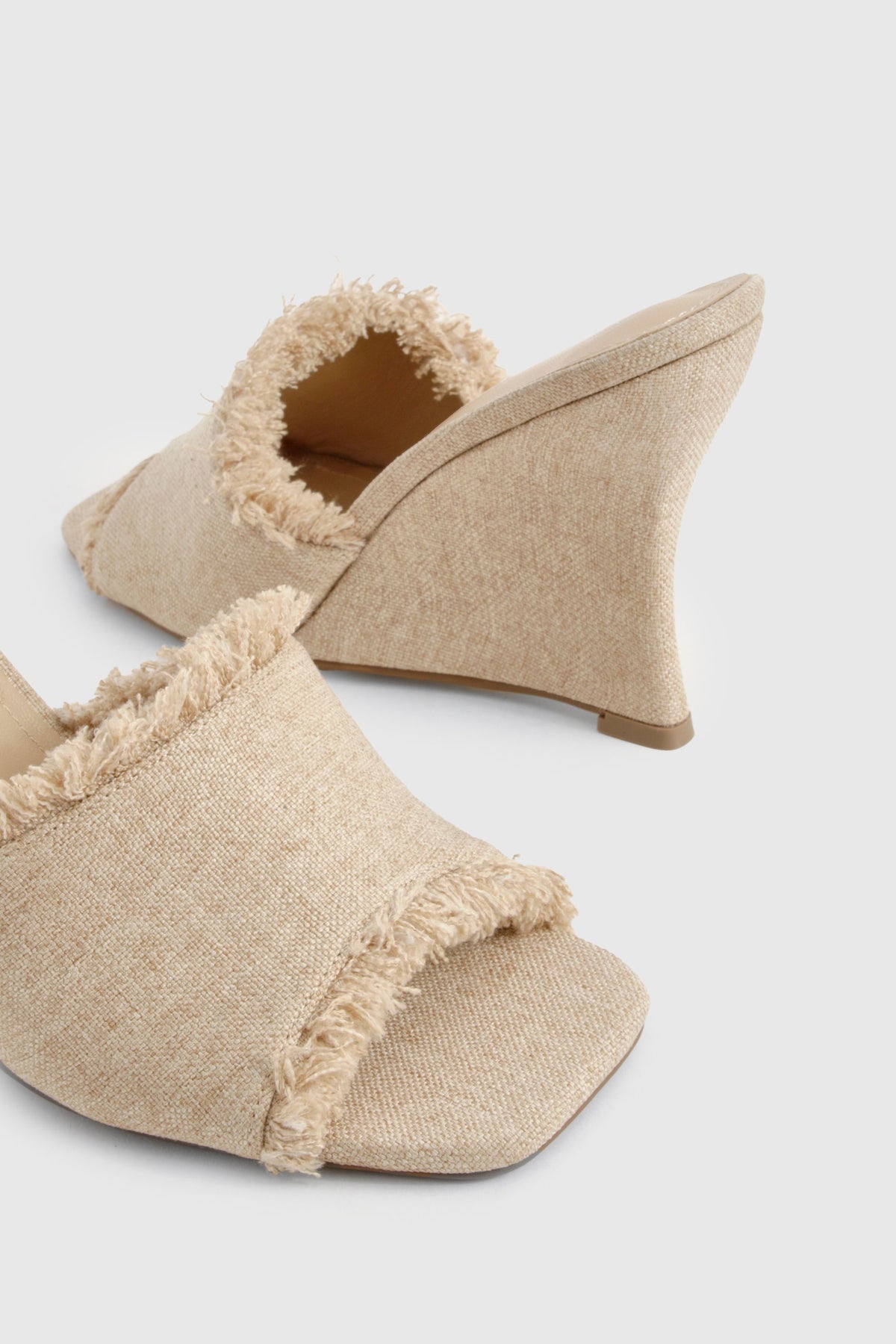 These linen wedge sandals with frayed detailing offer the perfect blend of casual charm and evening sophistication. The textured fabric and raw-edge finish create a relaxed yet refined aesthetic that works wonderfully for summer soires and nights out. The mid-height wedge provides comfortable elevation without sacrificing stability, making these ideal for dancing the night away or extended wear. Style them with flowing maxi dresses and statement jewellery for drinks at a rooftop bar, or pair with tailored linen trousers and a silky camisole when meeting friends for evening cocktails. The neutral tone ensures these versatile mules will become a go-to in your warm-weather wardrobe, easily transitioning from casual brunches to more glamorous evening events. Their slip-on design also makes them a practical choice for spontaneous nights out when you want to look effortlessly chic.Discover Frayed Edge Linen Wedges available to buy online at us.boohoo.com. Available with quick delivery and easy return options. Shop now!Discover Frayed Edge Linen Wedges available to buy online at us.boohoo.com. Available with quick delivery and easy return options. Shop now!