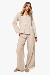 Subtle stripe pattern throughout the co-ord set