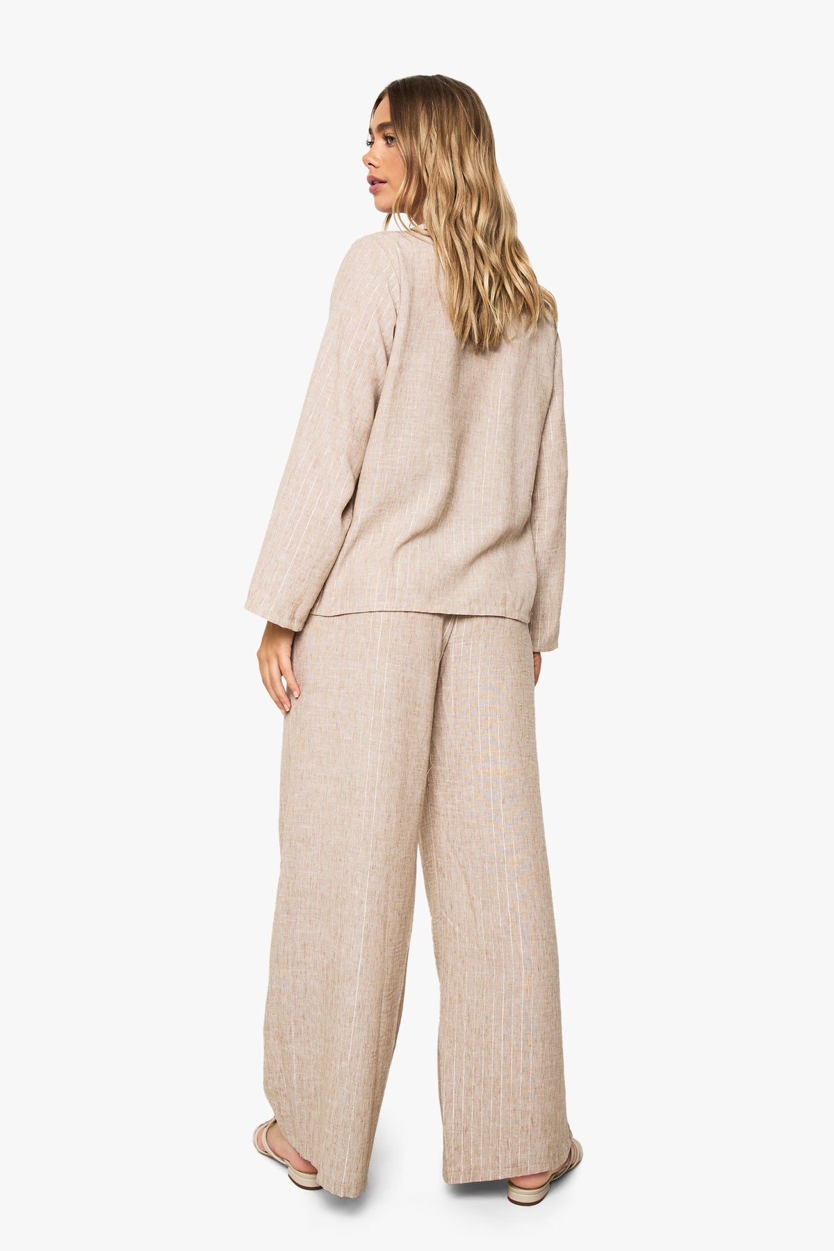 This linen-look stripe co-ord brings effortless style to your casual wardrobe. The relaxed shirt features a classic collar and button-through design, while the wide leg trousers create a flowing silhouette that's both comfortable and on-trend. Style with flat sandals as shown for daytime outings, or dress up with metallic accessories for casual evening gatherings. The versatility of this set cannot be overstated - wear together for a coordinated look or mix with other pieces in your wardrobe. The shirt pairs beautifully with denim shorts for a beach day, while the trousers can be matched with a simple cami top for family lunches. Add a woven tote bag and minimal jewellery to complete this laid-back yet put-together ensemble that's perfect for everything from weekend brunches to holiday sightseeing.Discover Linen Stripe Shirt & Trouser Co-ord available to buy online at us.boohoo.com. Available with quick delivery and easy return options. Shop now!Discover Linen Stripe Shirt & Trouser Co-ord available to buy online at us.boohoo.com. Available with quick delivery and easy return options. Shop now!