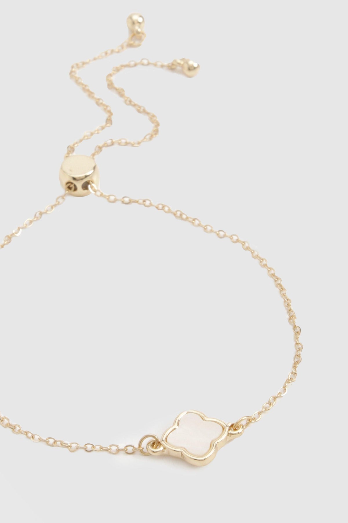 This elegant pearl bracelet from Boohoo is the perfect accessory to add a touch of sophistication to any outfit. The delicate chain and quatrefoil-shaped centrepiece create a subtle yet eye-catching look that can transition effortlessly from day to night. Whether you're heading to the office or out for dinner, this versatile piece will complement your style. Layer it with other bracelets for a trendy stacked look, or let it shine on its own for a more minimalist approach. The adjustable sliding clasp ensures a comfortable fit for any wrist size, making it an ideal gift for yourself or a fashion-forward friend. Pair it with a crisp white blouse and tailored trousers for a polished workwear ensemble, or dress it up with a little black dress for an evening out. This bracelet is the perfect finishing touch to manifest your personal style and add a hint of glamour to any look.Discover Pearl Single Clover Bracelet available to buy online at us.boohoo.com. Available with quick delivery and easy return options. Shop now!Discover Pearl Single Clover Bracelet available to buy online at us.boohoo.com. Available with quick delivery and easy return options. Shop now!