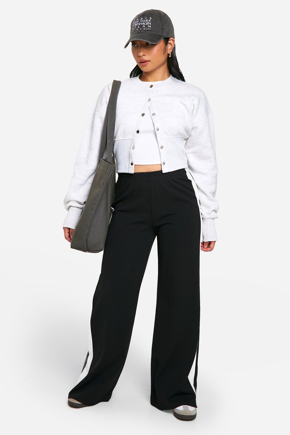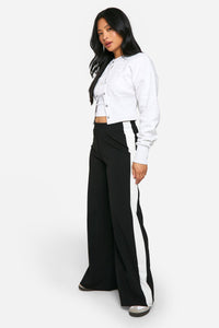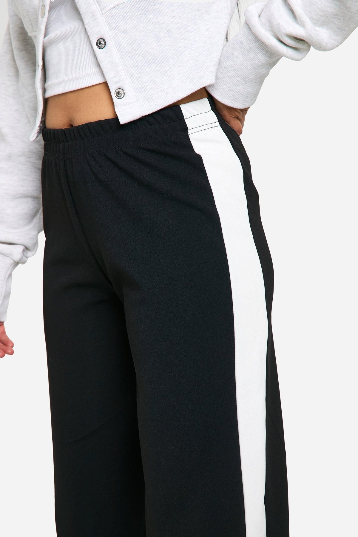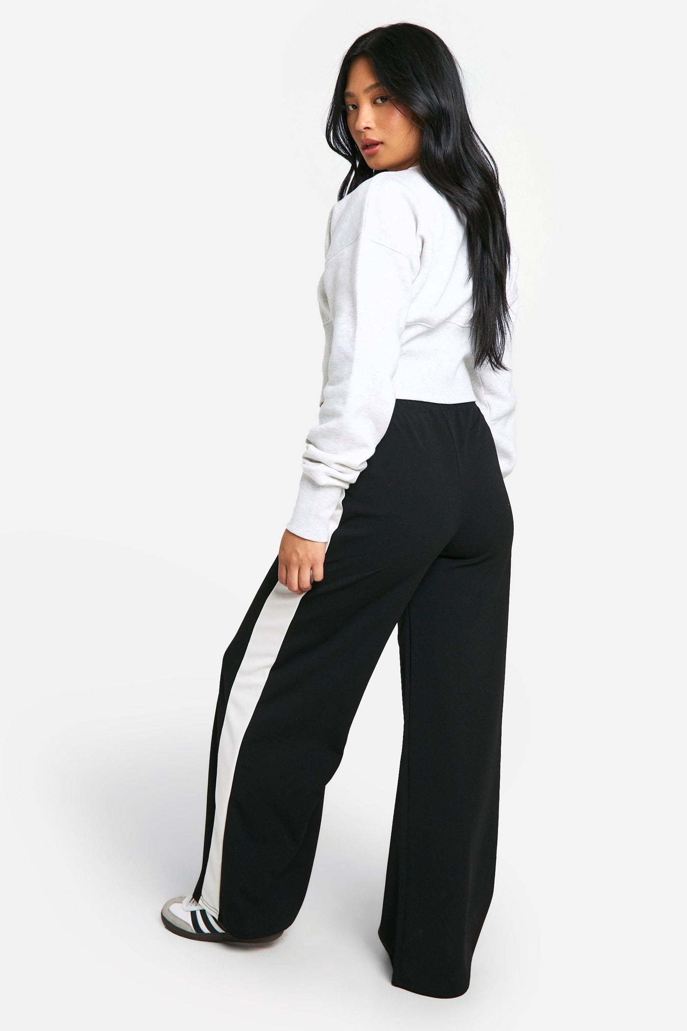 Make a statement with these eye-catching wide-leg trousers, perfect for the fashion-forward Boohoo girl. The contrasting side stripes lend a sporty vibe to this casual piece, whilst the high-rise waistband creates a sleek and elongated silhouette. Pair with a cropped cardigan and trainers for an effortlessly cool daytime look, or dress up with a fitted bodysuit and heels for a night out with the girls. The soft jersey fabric ensures comfort without compromising on style, making these trousers ideal for family gatherings or casual weekend brunches. Embrace the athleisure trend by teaming with a bomber jacket and chunky jewellery for an outfit that transitions seamlessly from day to night. These trousers are a must-have addition to any wardrobe, offering both comfort and on-trend style for the contemporary fashionista.Discover Petite Contrast Stripe Wide Leg Trouser available to buy online at us.boohoo.com. Available with quick delivery and easy return options. Shop now!Discover Petite Contrast Stripe Wide Leg Trouser available to buy online at us.boohoo.com. Available with quick delivery and easy return options. Shop now!