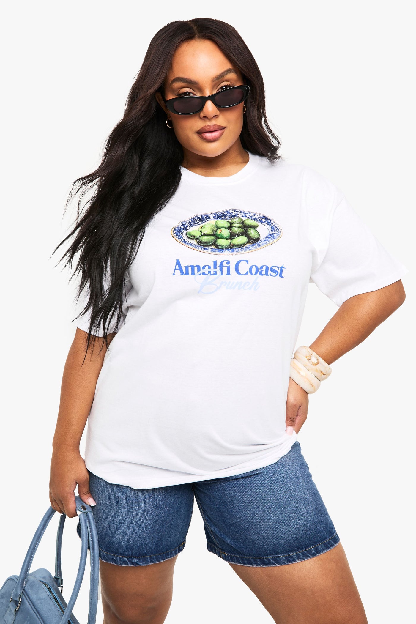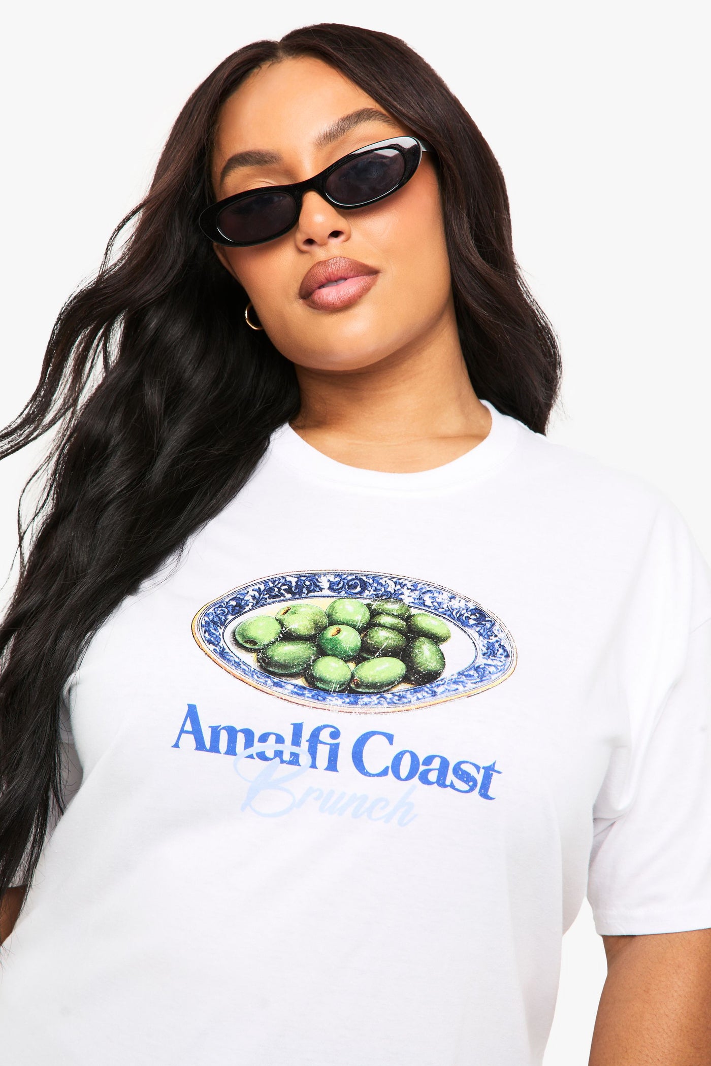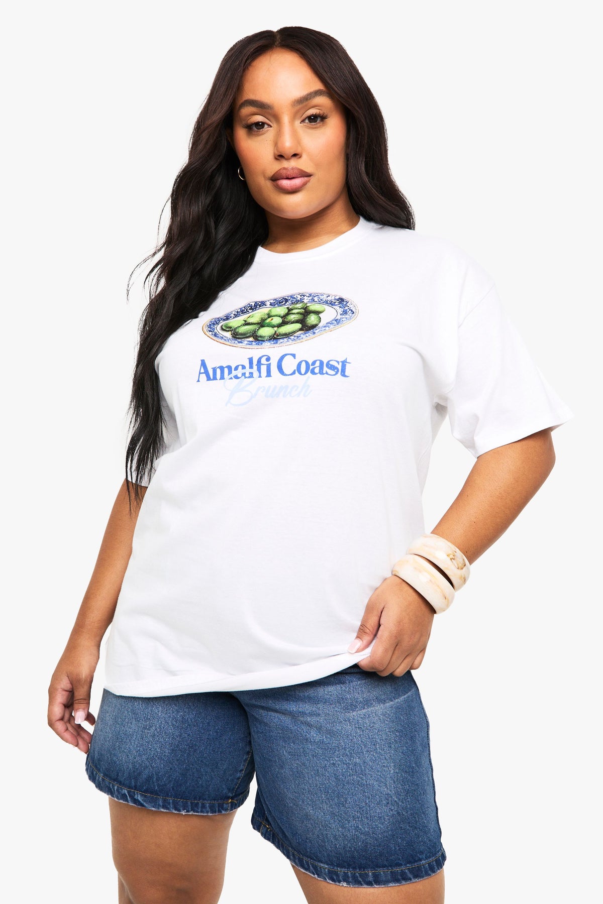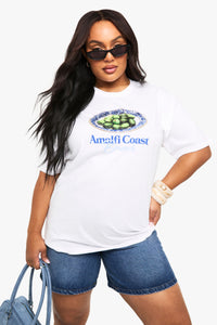 Channel Mediterranean holiday vibes with this charming Amalfi Coast t-shirt from Boohoo. The playful graphic print brings a touch of Italian sunshine to your everyday wardrobe. Style it casually as seen with denim shorts and statement accessories for a relaxed brunch date or weekend shopping trip. For cooler days, layer under a light denim jacket or oversized cardigan. This versatile tee transitions effortlessly from casual family gatherings to coffee with friends. Pair with wide-leg trousers and trainers for a contemporary look, or tuck into a flowing midi skirt for a more feminine silhouette. The relaxed fit ensures all-day comfort without compromising on style - a true wardrobe essential for the fashion-forward woman who values both comfort and trend-led pieces.Discover PLUS AMALFI COAST BRUNCH available to buy online at us.boohoo.com. Available with quick delivery and easy return options. Shop now!Discover PLUS AMALFI COAST BRUNCH available to buy online at us.boohoo.com. Available with quick delivery and easy return options. Shop now!
