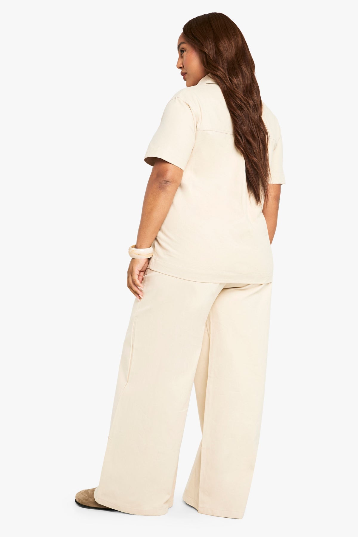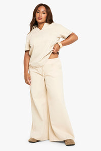 Plus Cotton Twill Drawstring Waist Wide Leg Trouser