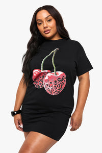 Oversized T-shirt dress with striking leopard print cherry graphic