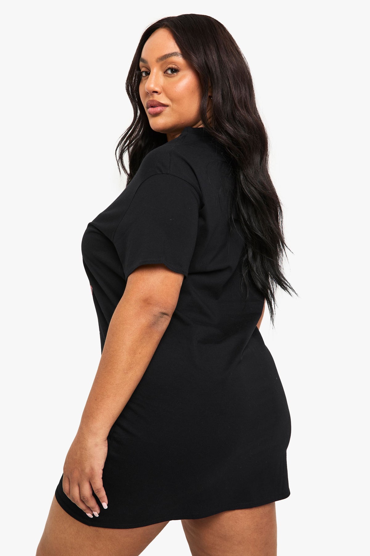 Make a bold statement with this playful oversized T-shirt dress from Boohoo. The eye-catching leopard print cherry graphic adds a touch of fun to this casual piece, whilst the relaxed fit ensures maximum comfort without compromising on style. Pair with chunky trainers and a crossbody bag for daytime outings as seen on our model, or dress it up with ankle boots and statement jewellery for evening drinks with the girls. The mini length is perfect for warmer days, but can easily transition into cooler weather when layered with tights and a leather jacket. This versatile dress works brilliantly for family gatherings, casual brunches, or weekend shopping trips - a true wardrobe essential that combines comfort with Boohoo's signature trendy aesthetic.Discover PLUS LEOPARD CHERRY OVERSIZED T-SHIRT DRESS available to buy online at us.boohoo.com. Available with quick delivery and easy return options. Shop now!Discover PLUS LEOPARD CHERRY OVERSIZED T-SHIRT DRESS available to buy online at us.boohoo.com. Available with quick delivery and easy return options. Shop now!