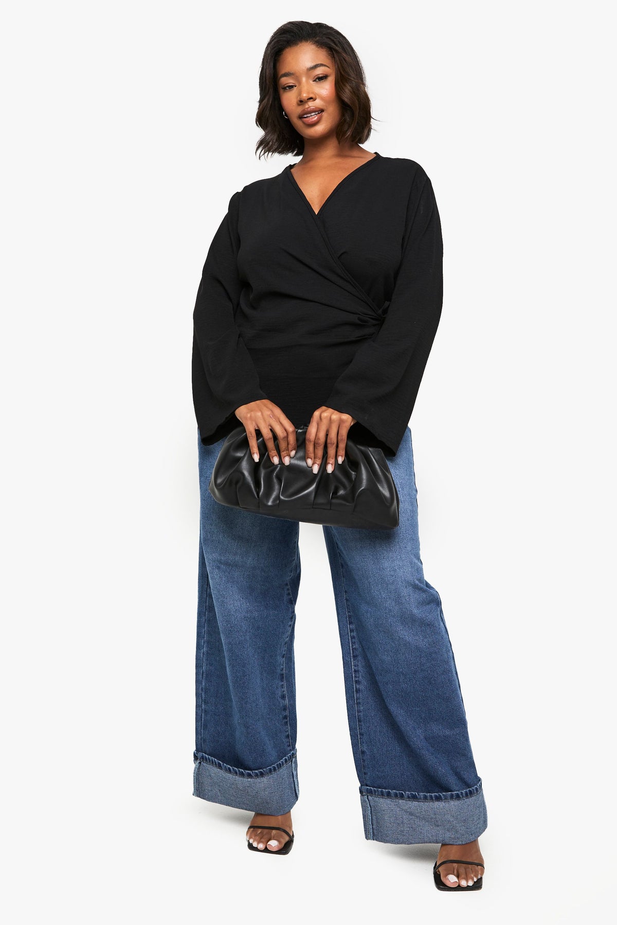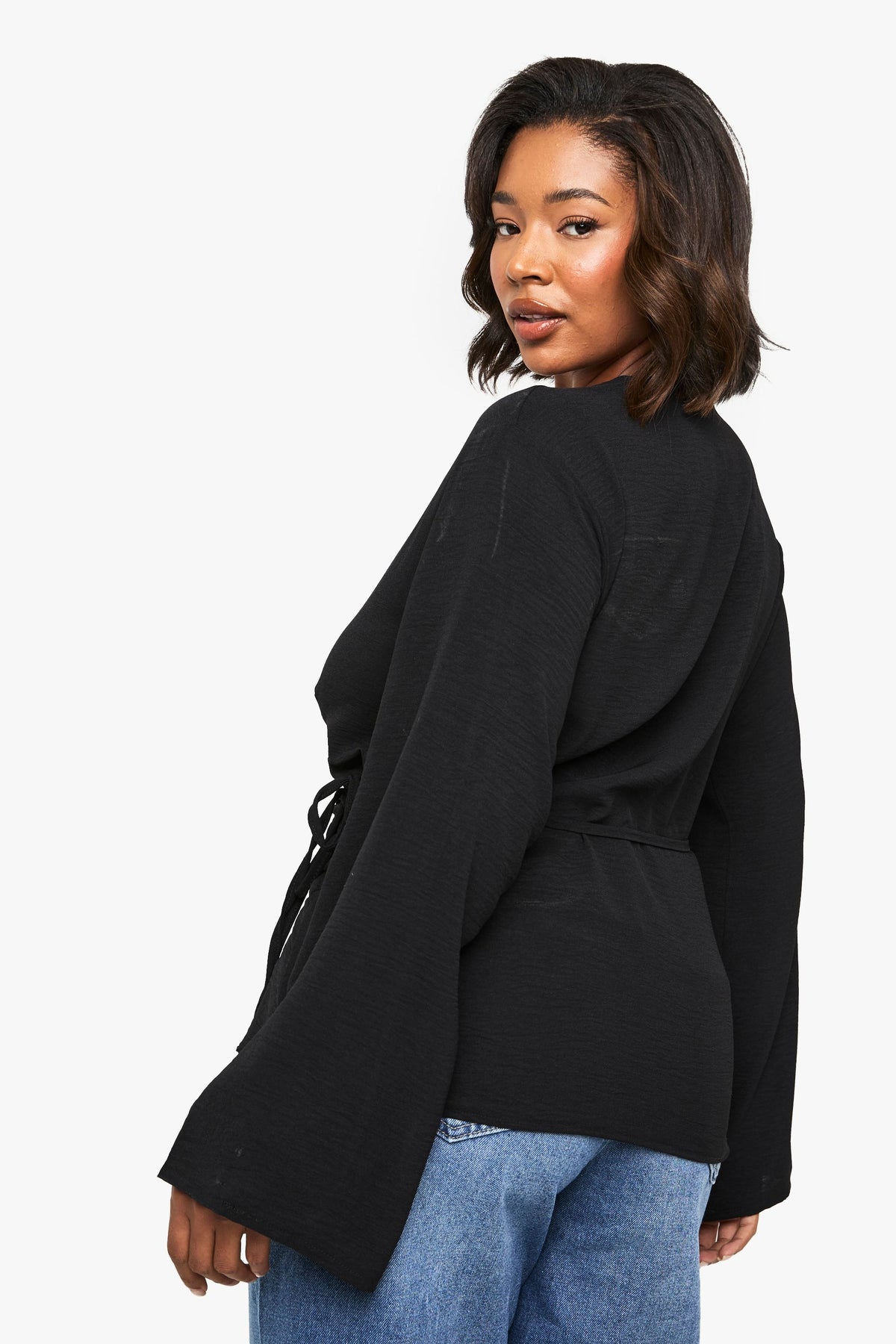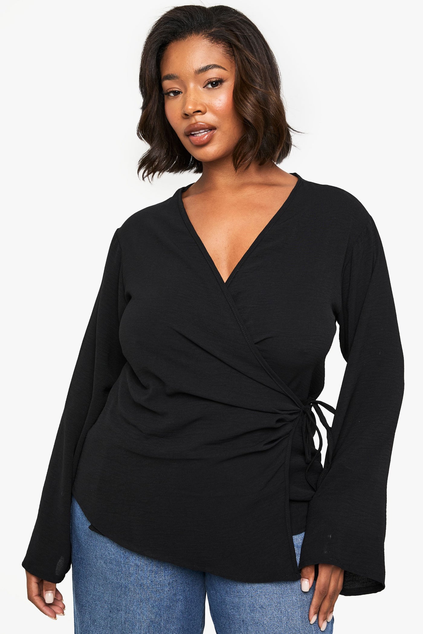 PLUS LONG SLEEVE ASYMETRIC TIE FRONT SHIRT