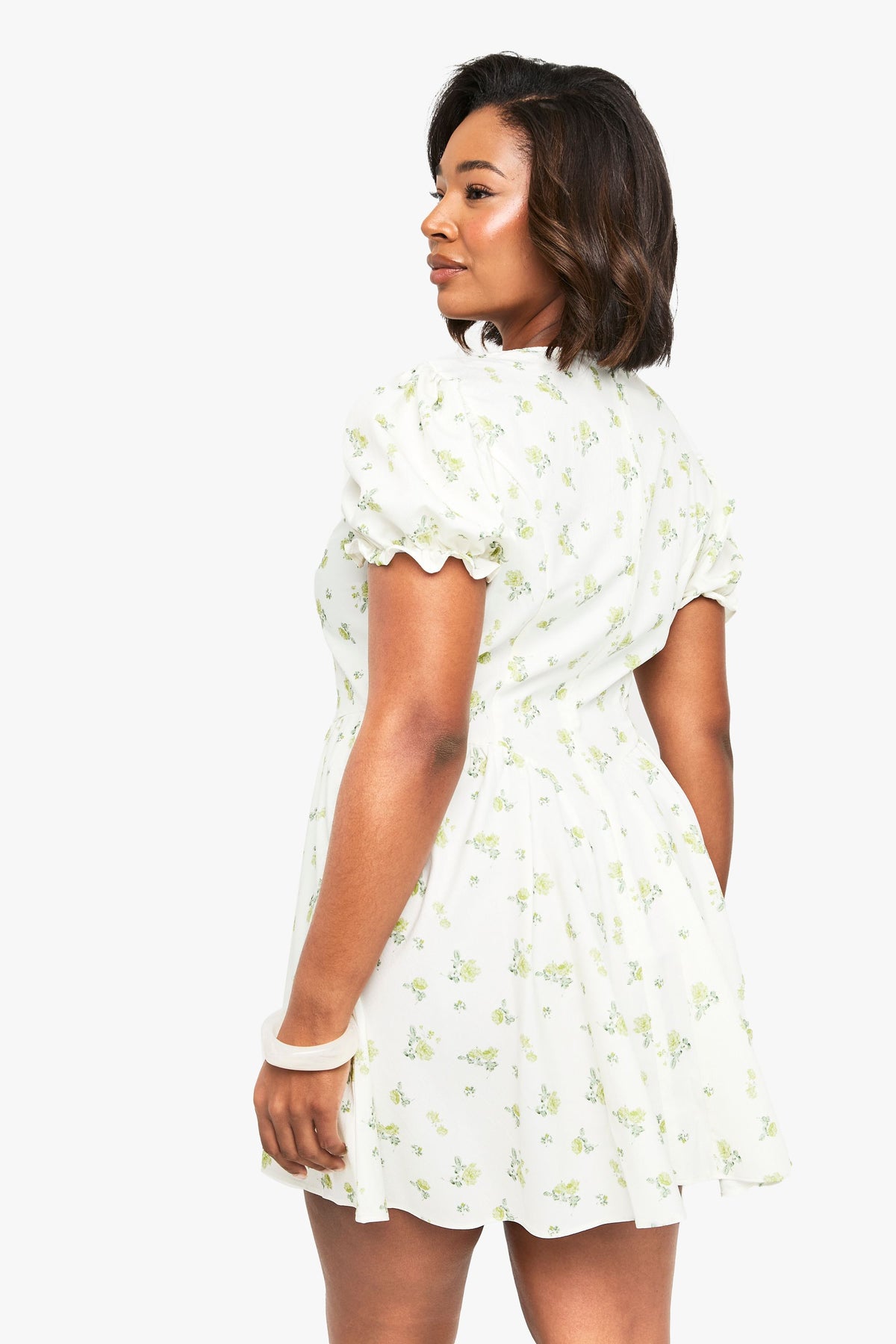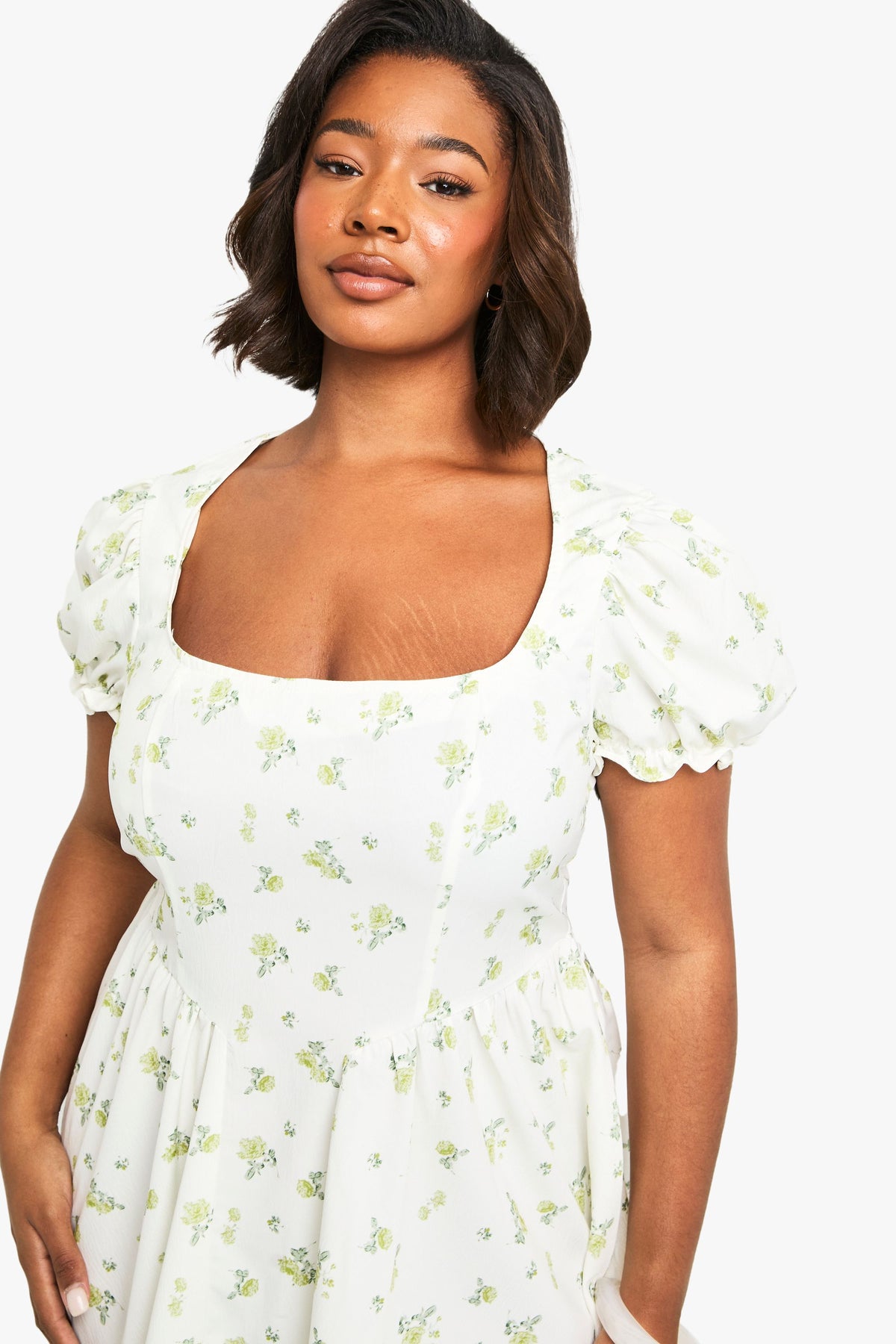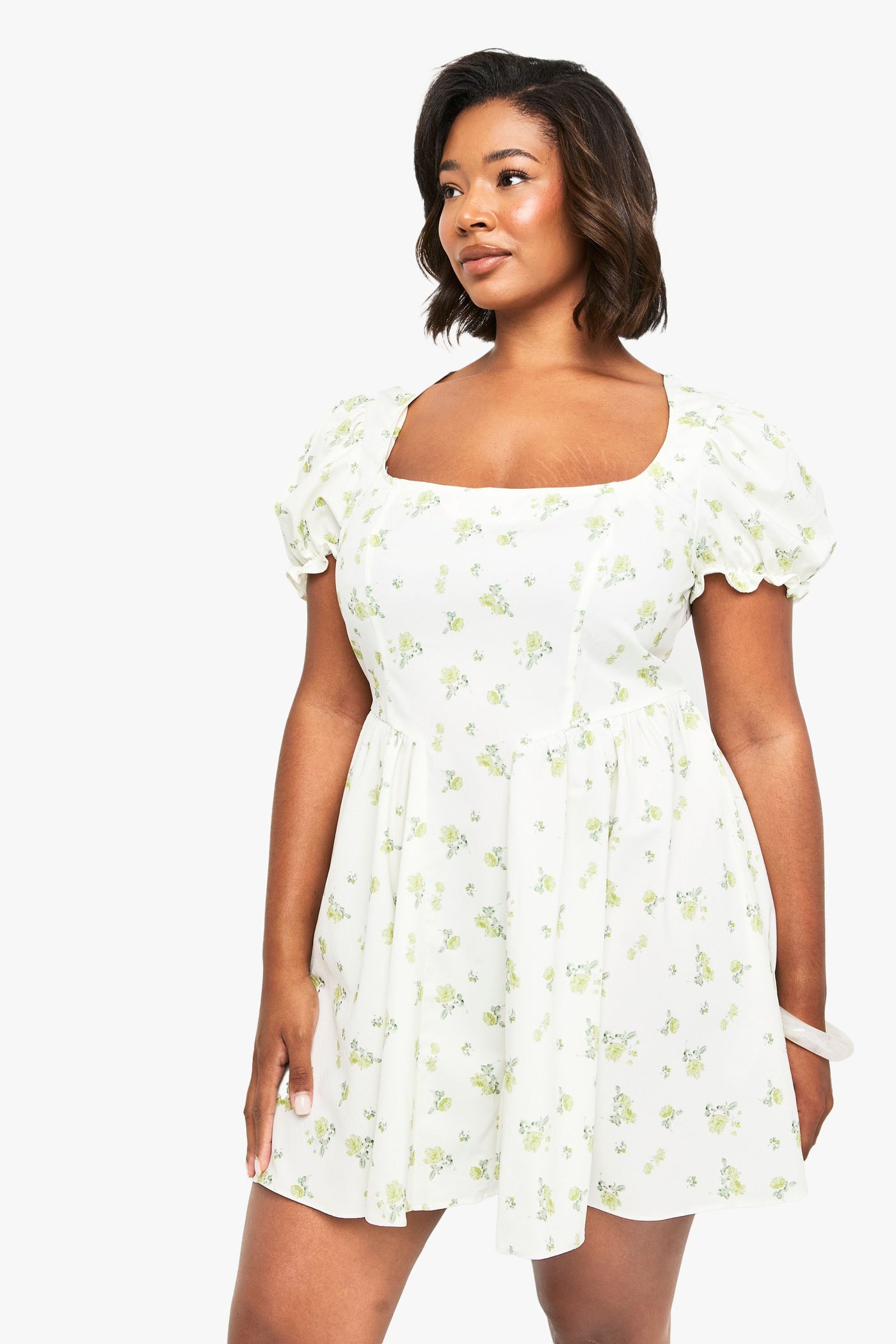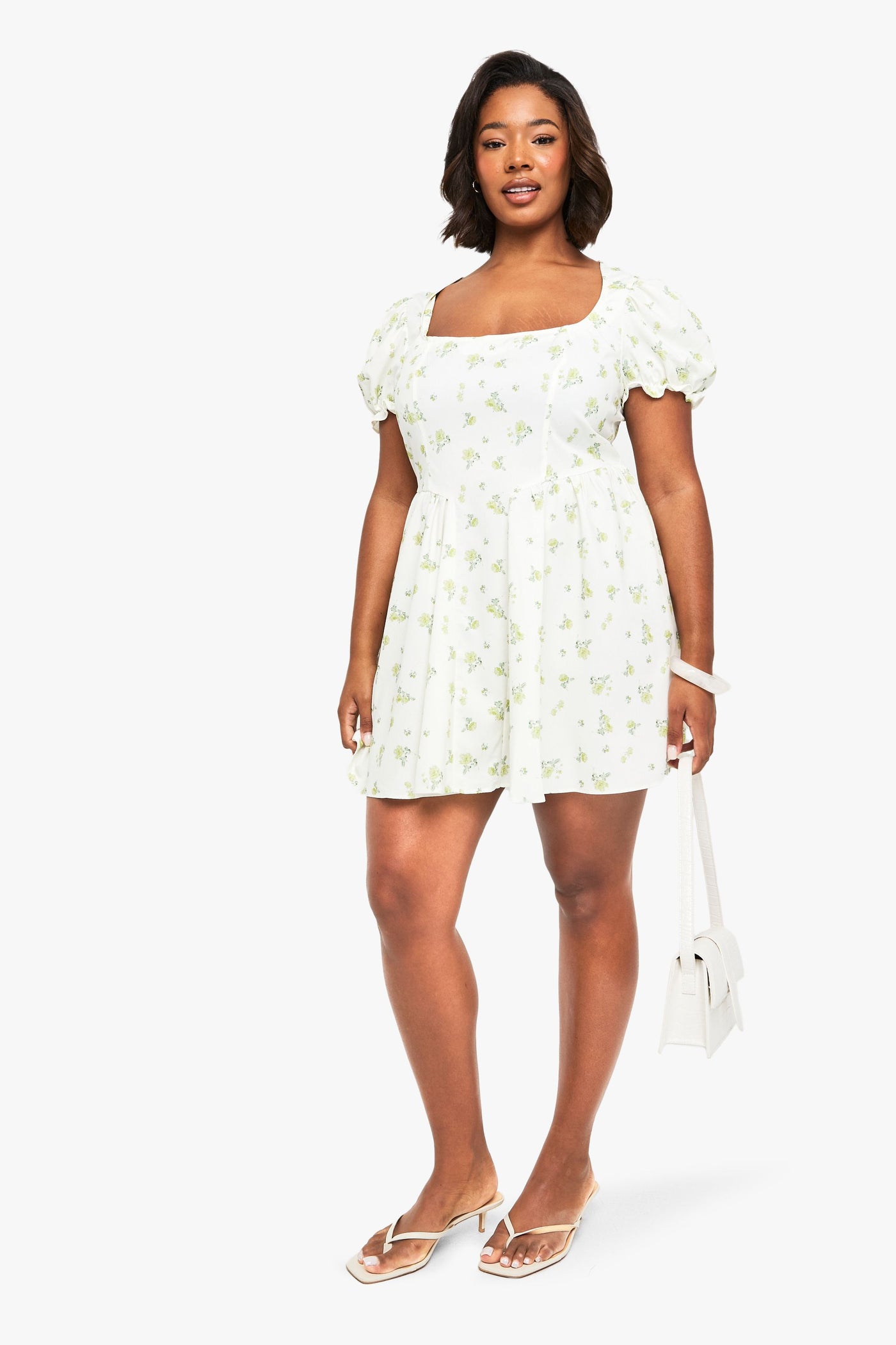 PLUS PUFF SLEEVE DITSY MILKMAID DRESS