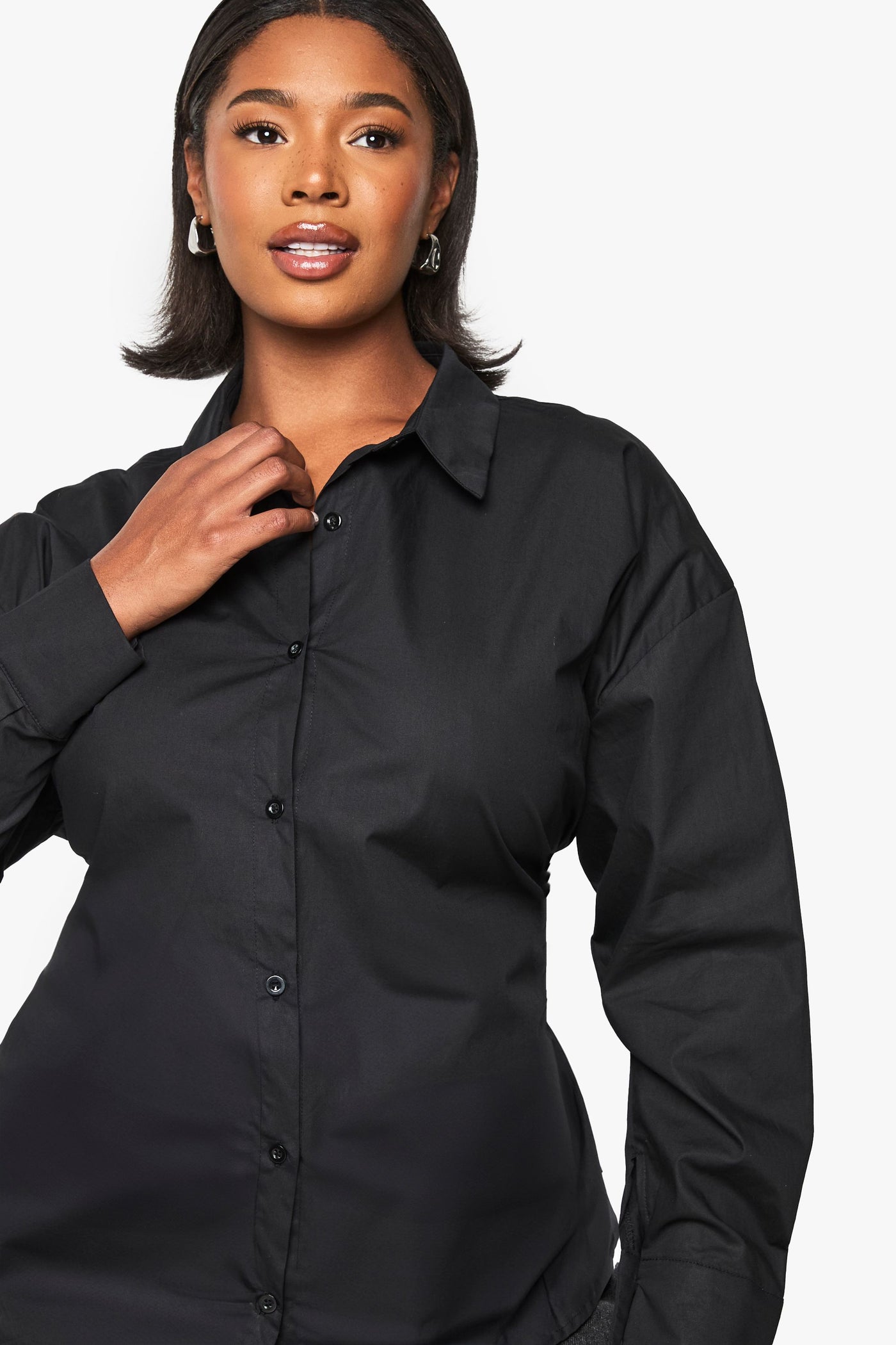 This Plus gathered shirt with tie detail from Boohoo offers the perfect blend of comfort and contemporary style. The distinctive gathered design creates a flattering silhouette, while the tie-back detail allows you to customise the fit to your preference. Pair with dark denim jeans and statement earrings for casual daytime outings, or dress it up with tailored trousers and heeled boots for evening occasions. The versatile nature of this shirt makes it ideal for transitioning from office to evening drinks with minimal effort. The cotton fabric ensures breathability and comfort throughout the day, whilst the classic button-through design allows for various styling options - wear fully buttoned for a polished look or slightly open for a more relaxed feel. A true wardrobe essential for the fashion-forward woman.Discover Plus Tie Cross Back Cinched Long Line Shirt available to buy online at us.boohoo.com. Available with quick delivery and easy return options. Shop now!Discover Plus Tie Cross Back Cinched Long Line Shirt available to buy online at us.boohoo.com. Available with quick delivery and easy return options. Shop now!