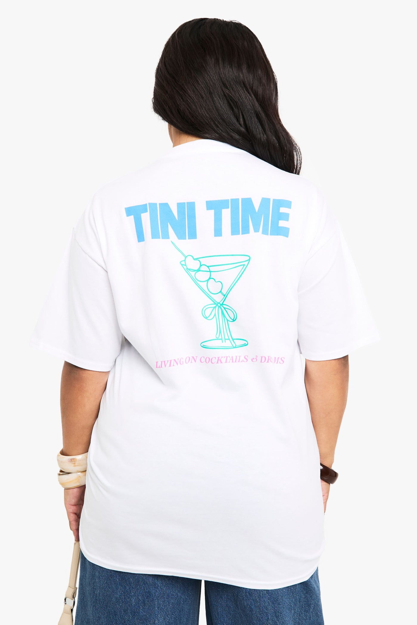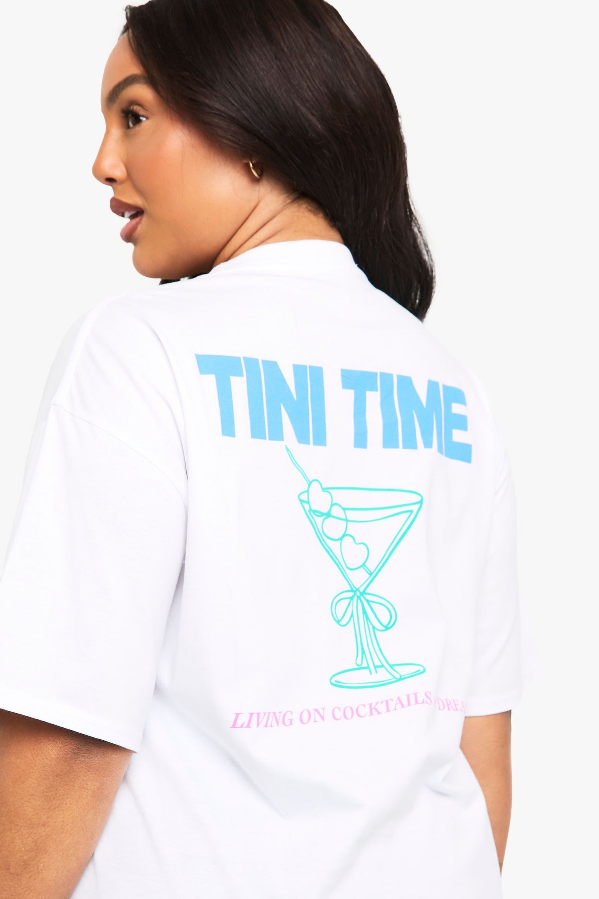 Make a statement with this playful Plus Oversize T-Shirt featuring a cheeky 'Tini Time' cocktail graphic. Perfect for casual gatherings where you want to showcase your personality without compromising on comfort. Style it as seen with your favourite blue denim jeans for daytime brunches, or tuck the front into high-waisted shorts for summer festivals. The oversized silhouette works brilliantly with chunky trainers and a mini shoulder bag for running errands, or dress it up with statement jewellery and layered bangles for evening drinks with the girls. This versatile tee transitions seamlessly from day to night - simply swap your casual accessories for bolder pieces when the sun goes down. A must-have addition to your weekend wardrobe that brings a touch of humour to your everyday style.Discover PLUS TINI TIME OVERSIZED T-SHIRT available to buy online at us.boohoo.com. Available with quick delivery and easy return options. Shop now!Discover PLUS TINI TIME OVERSIZED T-SHIRT available to buy online at us.boohoo.com. Available with quick delivery and easy return options. Shop now!