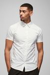 Freshen up your summer wardrobe with fun short sleeve shirts. Summer is the time for getting those guns out and no matter the occasion, we've got a short sleeve shirt to fit. Whether you prefer plain block colours, open knit weaves or eye-watering Hawaiian prints, with a fitted white tee as your base layer you can wear any shirt unbuttoned for a laid-back casual look, or tuck into cool chinos for a more sophisticated ensemble. Add a chain and bucket hat for instant beach party vibes, or if you're headed for the pool, match a bold leaf print with swim shorts so it's just a quick change and you can hit the water. Style Plain ShirtDesign PlainLength RegularSleeve Length Short SleeveDiscover Short Sleeve Stretch Fit Shirt available to buy online at us.boohoo.com. Available with quick delivery and easy return options. Shop now!Discover Short Sleeve Stretch Fit Shirt available to buy online at us.boohoo.com. Available with quick delivery and easy return options. Shop now!
