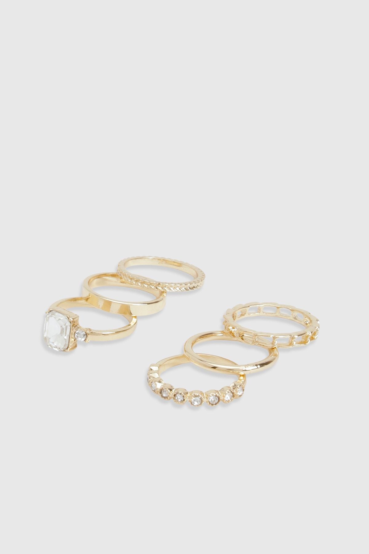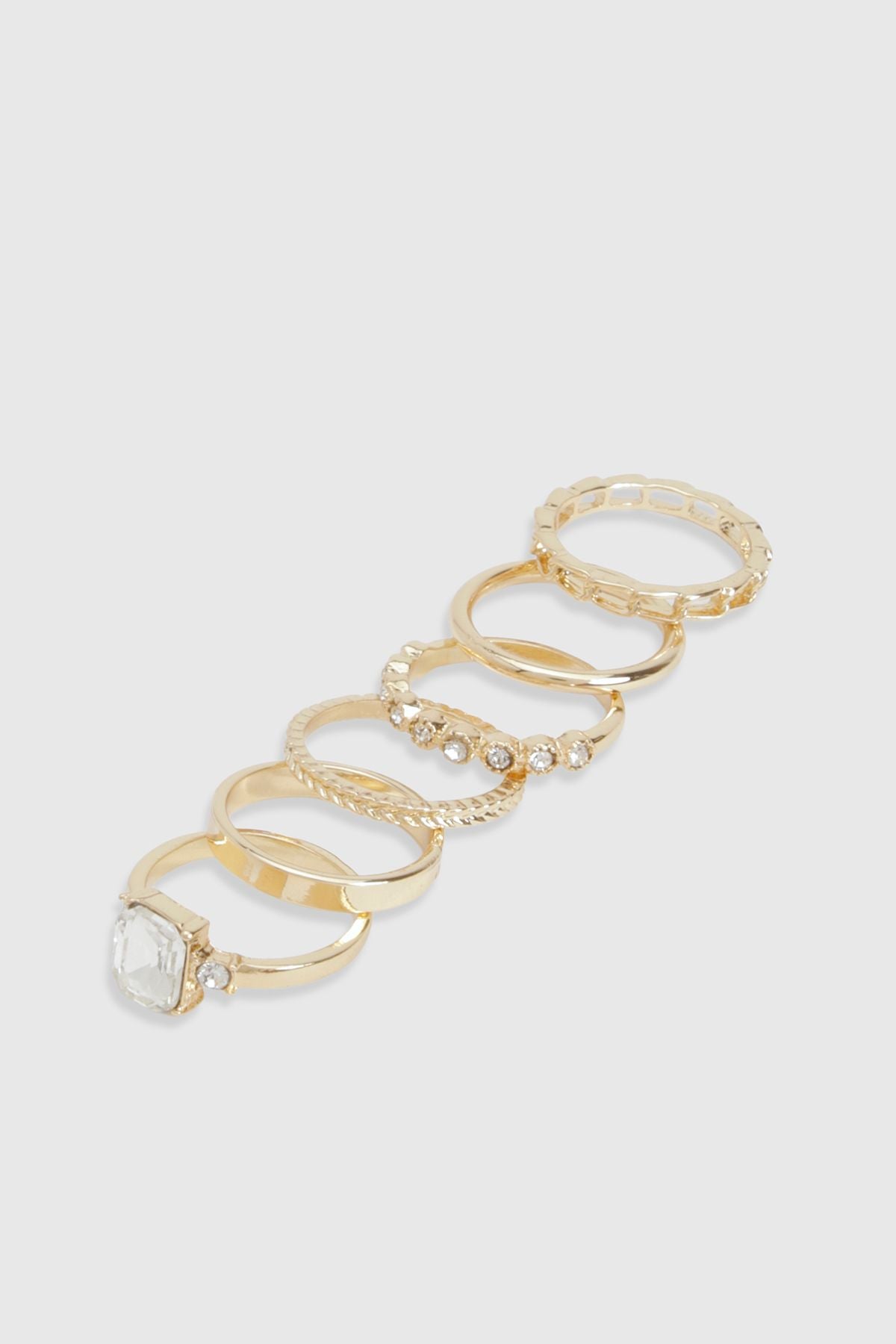 Add instant glamour to any outfit with this stunning six-pack of diamante rings. Each ring in this collection offers a different design, from the eye-catching solitaire centrepiece to delicate diamante-studded bands, allowing for endless styling possibilities. Layer multiple rings on a single finger for a bold statement or distribute them across both hands for a more balanced look. These versatile accessories effortlessly transition from daytime casual to evening elegance-pair with jeans and a simple top for coffee dates, or complement your favourite party dress for nights out. The gold-tone finish works beautifully with other jewellery pieces in your collection, making these rings the perfect addition to your accessory wardrobe. Ideal for those who love to refresh their look without committing to a single style, this ring set delivers maximum impact with minimal effort.Discover Statement Diamante Rings 6 Pack available to buy online at us.boohoo.com. Available with quick delivery and easy return options. Shop now!Discover Statement Diamante Rings 6 Pack available to buy online at us.boohoo.com. Available with quick delivery and easy return options. Shop now!