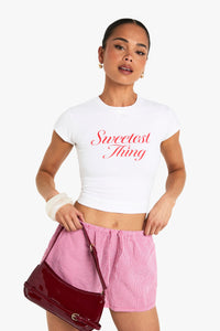 Cropped baby T-shirt with charming "Sweetest Thing" script detail