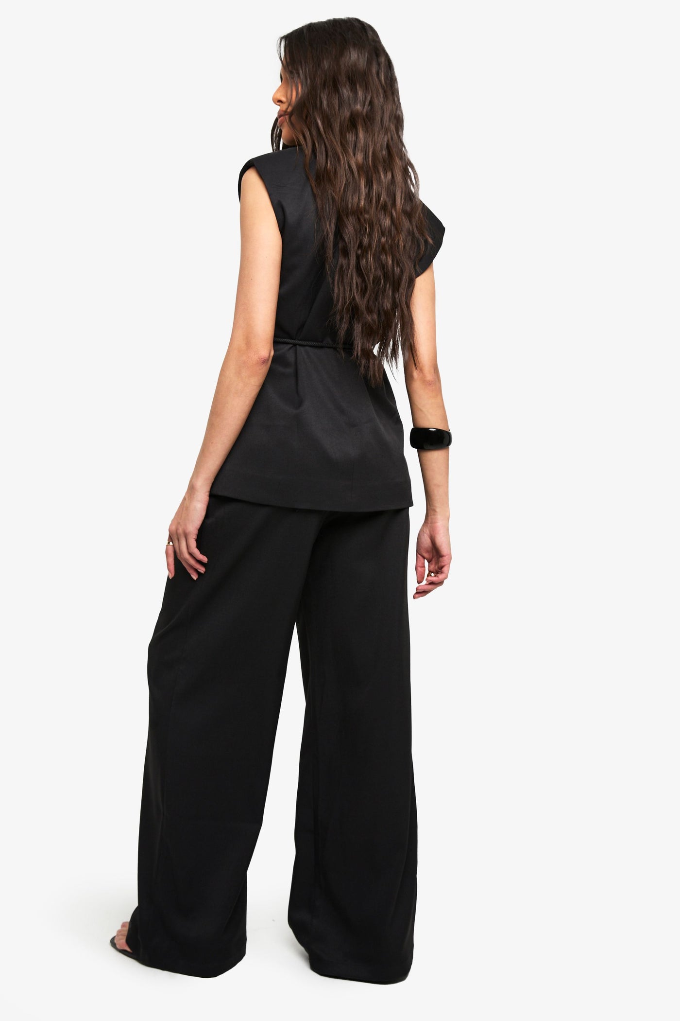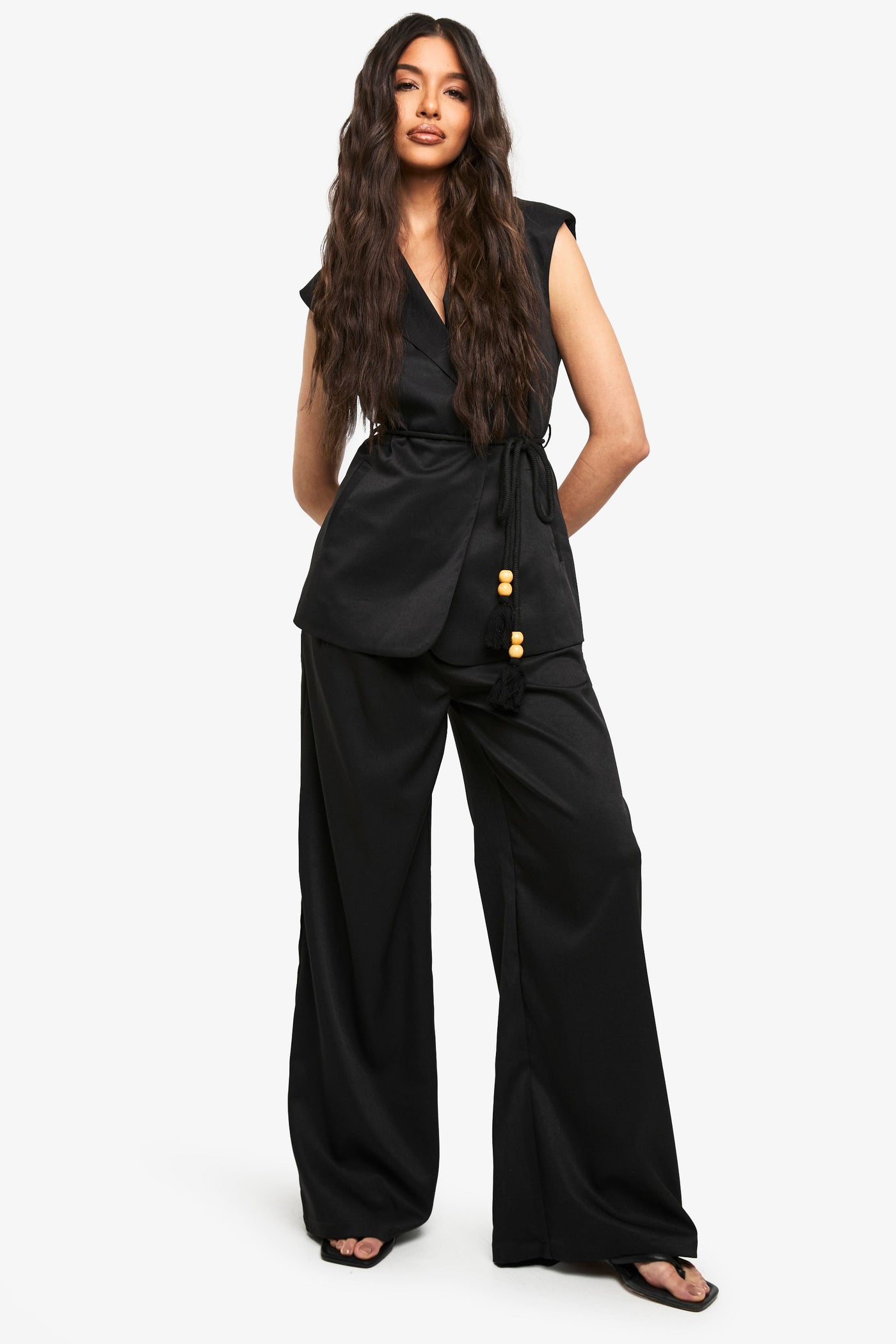 These linen-look wide leg trousers reflect contemporary fashion whilst maintaining timeless appeal. The flowing silhouette creates a sophisticated drape that flatters all body types, whilst the high-rise waist accentuates your natural curves. Style with a wrap top as shown for a coordinated ensemble that works brilliantly for daytime events, or dress up with a fitted blouse and statement jewellery for evening gatherings. The relaxed fit makes these trousers ideal for warm-weather socialising, family brunches or casual office days. Pair with flat sandals and a straw hat for a holiday-ready look, or add heeled mules and a structured handbag for a more refined aesthetic. These trousers offer the perfect balance of comfort and style for the fashion-forward woman who values versatility in her wardrobe.Discover Tailored Linen Look Wide Leg Trouser available to buy online at us.boohoo.com. Available with quick delivery and easy return options. Shop now!Discover Tailored Linen Look Wide Leg Trouser available to buy online at us.boohoo.com. Available with quick delivery and easy return options. Shop now!