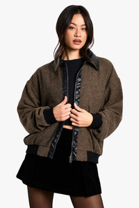 Tall bomber jacket with wool-look texture for added warmth and dimension
