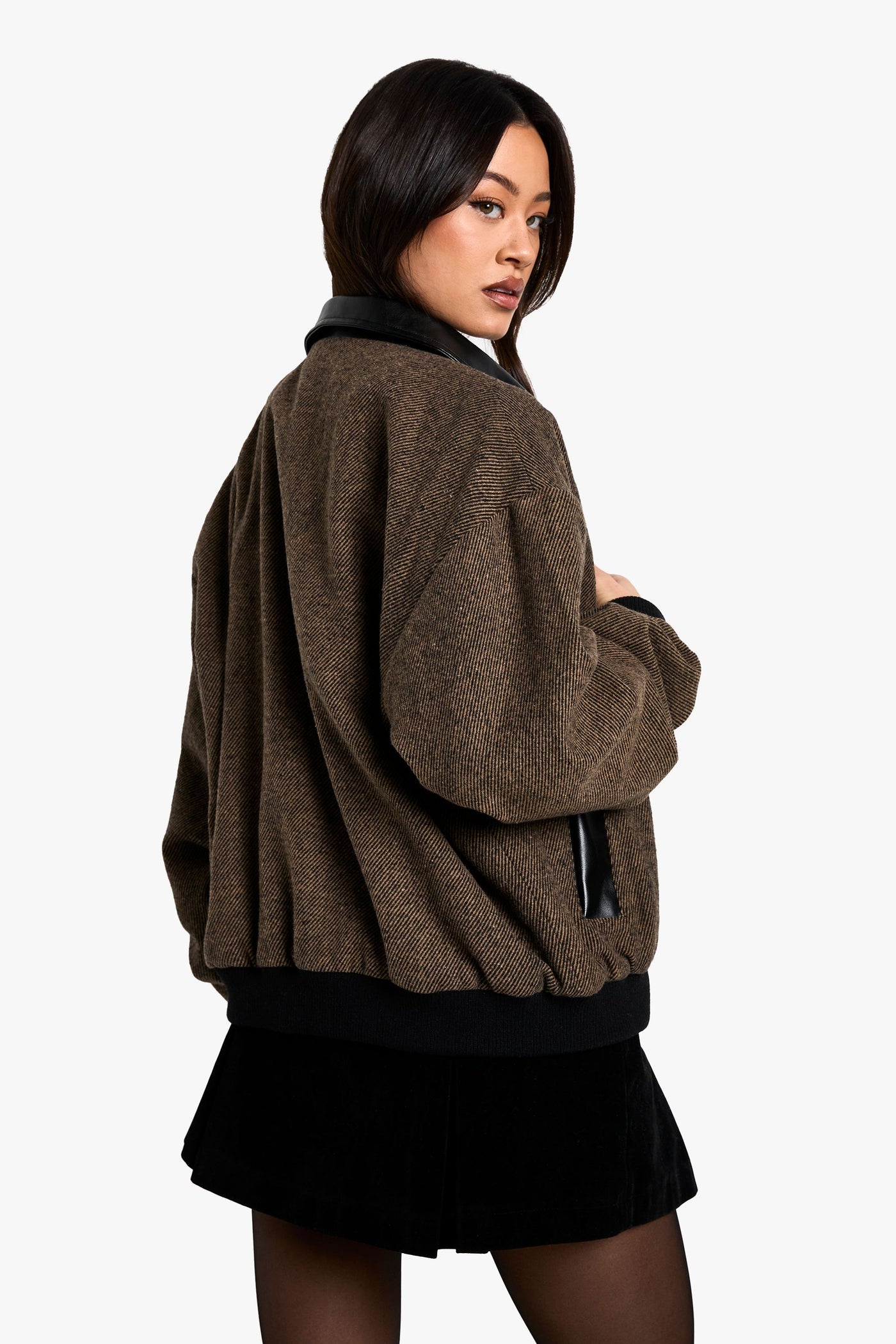 This Boohoo Tall bomber jacket combines classic styling with contemporary details for a versatile wardrobe staple. The wool-look texture creates a sophisticated appearance whilst the contrasting PU leather elements add an urban twist that's perfect for the fashion-forward. Style with a crop top and mini skirt as shown for a night out with mates, or throw over jeans and a tee for casual daytime wear. The relaxed fit makes it ideal for layering over jumpers when temperatures drop, whilst the timeless bomber silhouette ensures you'll reach for it season after season. Perfect for autumn strolls, weekend brunches or evening drinks, this jacket transitions seamlessly from day to night. Pair with trainers for a casual look or boots to add edge - this adaptable piece works brilliantly across your entire wardrobe.Discover Tall Contrast PU Trim Wool Look Bomber Jacket available to buy online at us.boohoo.com. Available with quick delivery and easy return options. Shop now!Discover Tall Contrast PU Trim Wool Look Bomber Jacket available to buy online at us.boohoo.com. Available with quick delivery and easy return options. Shop now!