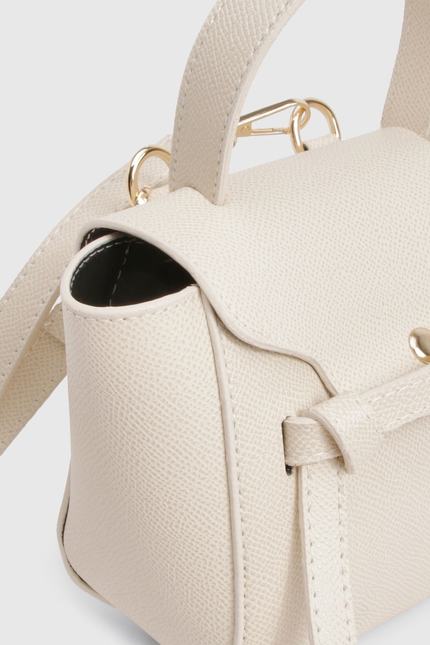 Secure fold-over flap closure with decorative strap detail