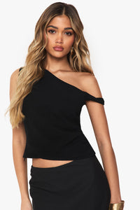 Asymmetric neckline creates a modern, fashion-forward silhouette