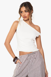 Asymmetric one-shoulder design with contemporary twist detail