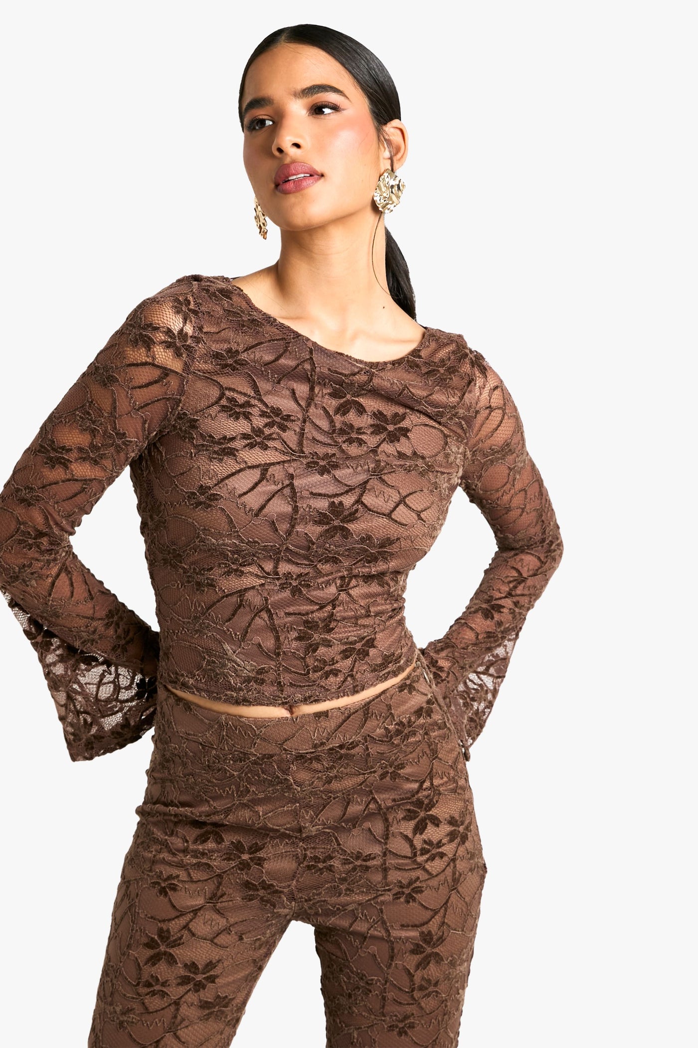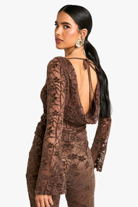 Make a statement this festive season with our show-stopping velvet top. The alluring scoop neckline and long sleeves with flared cuffs create a sophisticated silhouette, while the open back with delicate tie closure adds a touch of allure. Perfect for Christmas parties or New Year's Eve celebrations, this top pairs beautifully with high-waisted trousers or a sleek pencil skirt. Accessorise with statement earrings and a clutch bag for a glamorous evening look. For a more casual approach, style with dark-wash jeans and heeled boots for drinks with friends. The versatile design allows for endless styling possibilities, ensuring you'll stand out at any festive gathering.Discover Velvet Lace Scoop Cowl Back Long Sleeve Top available to buy online at us.boohoo.com. Available with quick delivery and easy return options. Shop now!Discover Velvet Lace Scoop Cowl Back Long Sleeve Top available to buy online at us.boohoo.com. Available with quick delivery and easy return options. Shop now!