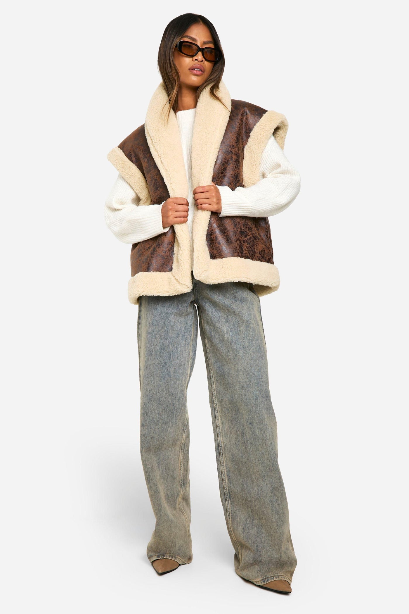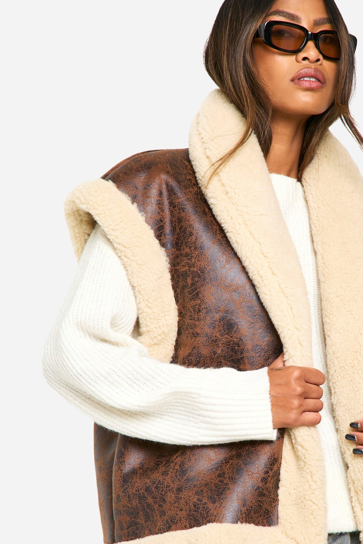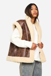Channel your inner aviator with this striking flieger-style vest. The vintage-inspired design marries rugged charm with contemporary flair, making it a standout piece for your casual wardrobe. Layer it over a chunky knit jumper and pair with wide-leg jeans for a relaxed weekend look that's perfect for brunch with friends or a leisurely stroll through the park. The oversized fit allows for easy layering, while the sleeveless design offers versatility for transitional weather. For a more edgy ensemble, throw it over a fitted black turtleneck, team with leather trousers and ankle boots. This vest is not just a garment; it's a statement piece that will inject a dose of cool into any outfit, whether you're heading to a music festival or a casual family gathering.Discover Vintage Look Bonded Aviator Gilet available to buy online at us.boohoo.com. Available with quick delivery and easy return options. Shop now!Discover Vintage Look Bonded Aviator Gilet available to buy online at us.boohoo.com. Available with quick delivery and easy return options. Shop now!