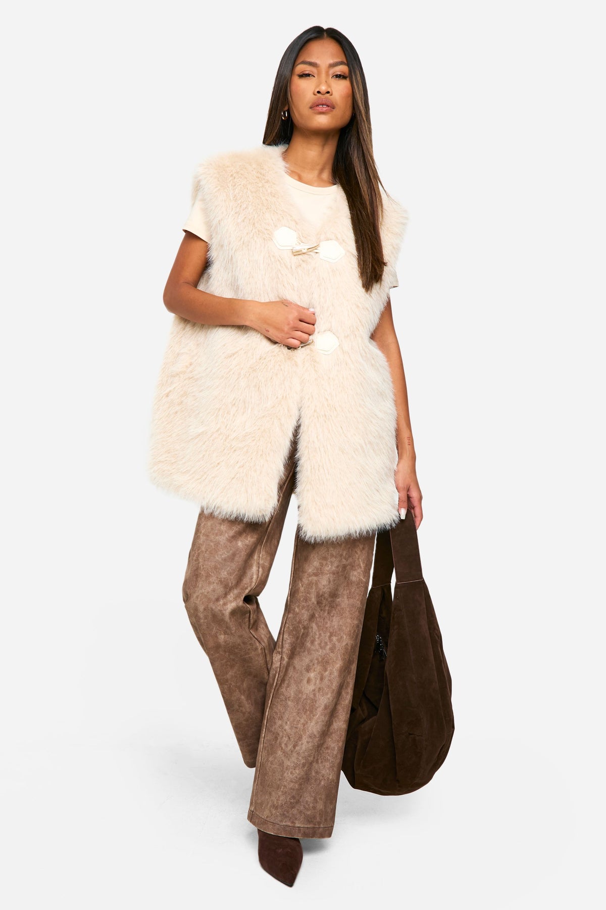 Embrace retro-chic vibes with this oversized faux fur vest from Boohoo. Perfect for the fashion-forward woman who loves to make a statement, this piece effortlessly blends vintage charm with contemporary style. Layer it over a simple tee and wide-leg trousers for a casual yet sophisticated look, ideal for family gatherings or brunch with friends. The versatile design allows for endless styling options - throw it on over a long-sleeved dress and ankle boots for a cosy autumn ensemble, or pair it with a turtleneck and skinny jeans for a more streamlined silhouette. The toggle closures add a playful touch, while the plush texture ensures you'll stay warm and stylish throughout the cooler months. This vest is a must-have addition to any trendsetter's wardrobe, offering both comfort and head-turning appeal for various casual occasions.Discover Vintage Look Faux Fur Toggle Detail Oversized Gilet available to buy online at us.boohoo.com. Available with quick delivery and easy return options. Shop now!Discover Vintage Look Faux Fur Toggle Detail Oversized Gilet available to buy online at us.boohoo.com. Available with quick delivery and easy return options. Shop now!