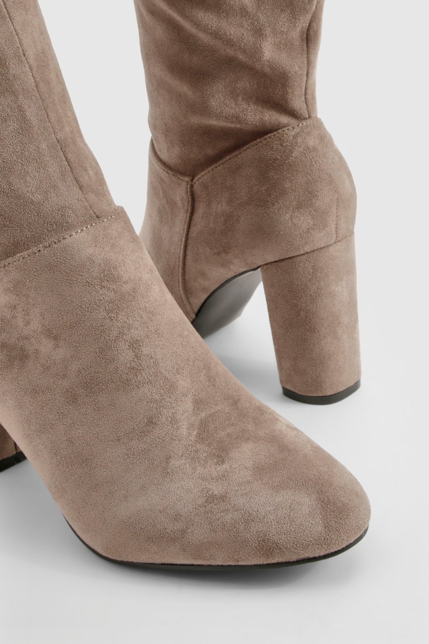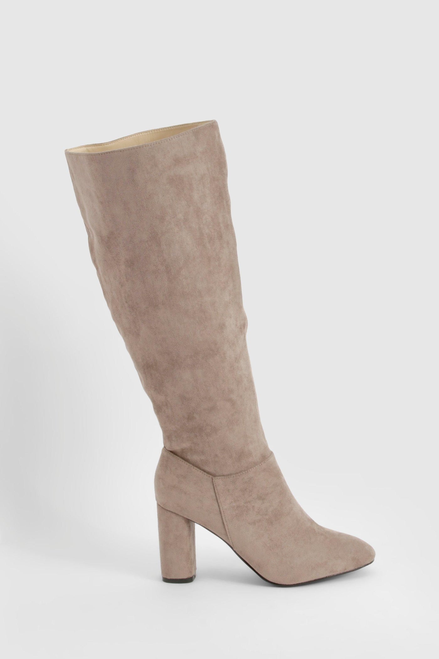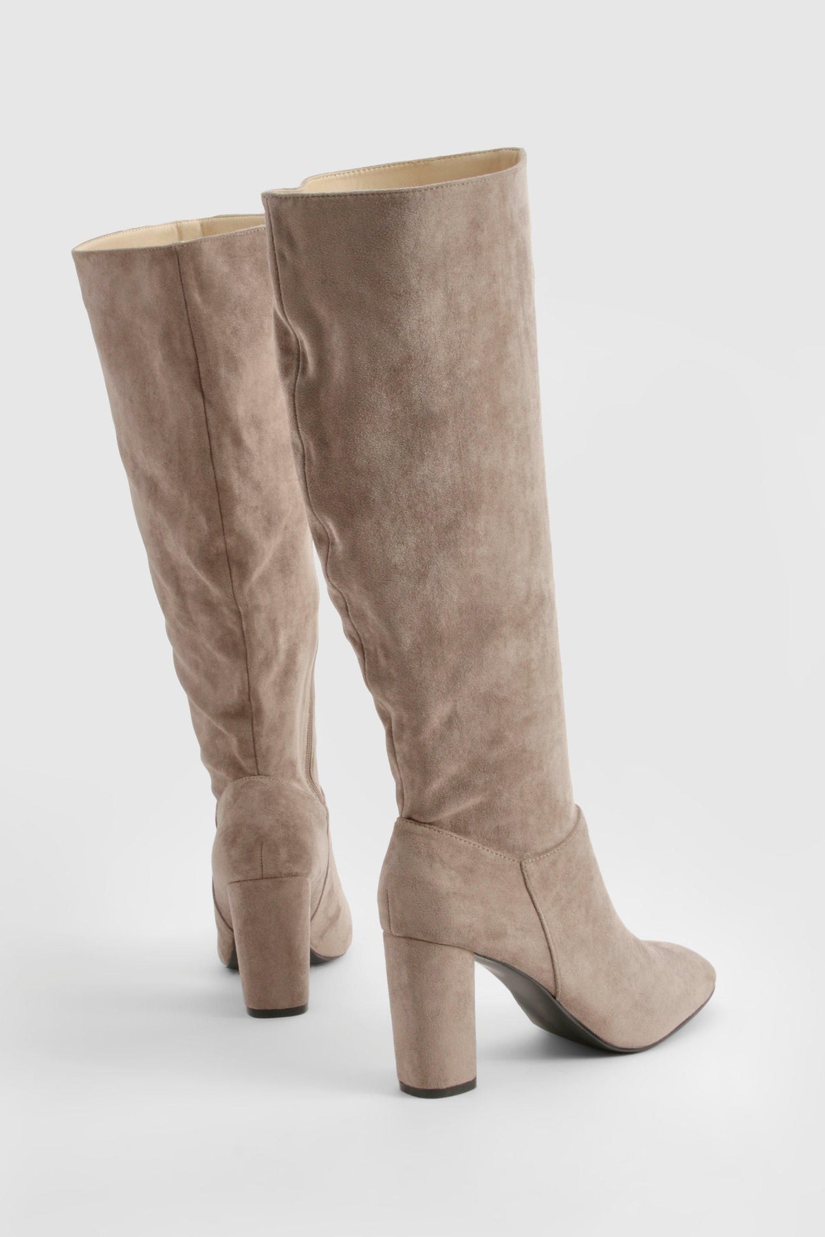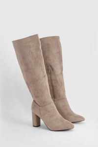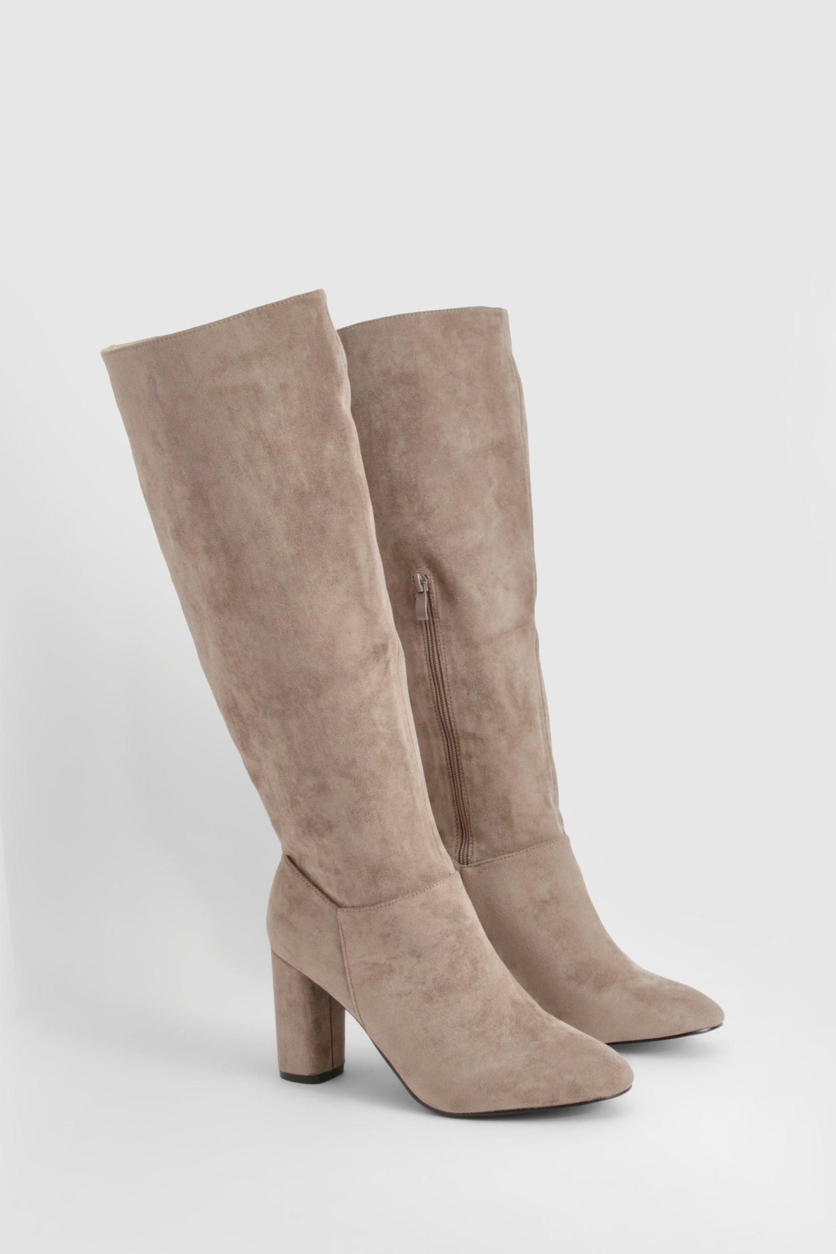 Wide Fit Faux Suede Block Heel Knee High Boots
